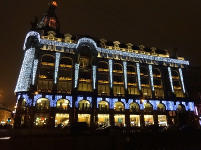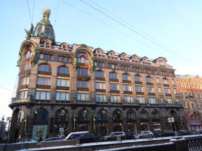 La "Dom Knigui" ("Дом книги" significa “casa del libro”) de San Petersburgo se instaló en el edificio de Zinger después de la Revolución, en el año 1919. Ahora es difícil imaginar la avenida Nevski sin ese edificio con su cúpula tan característica, pero no es tan antiguo, sólo fue construido en 1902-1904. La empresa de máquinas de coser “Zinger” compró el sitio para la edificación y de esa manera, instalándose frente a la misma Catedral de Kazán, quiso darle más importancia a su negocio en San Petersburgo.
