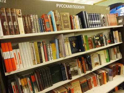 También hay una enorme feria del libro en un barrio industrial (20 minutos en metro desde el centro y unos 10-15 andando) que ocupa un enorme edificio de la Casa de Cultura de Nadiezhda Krúpskaya (Дом Культуры имени Надежды Крупской) y que es el sitio favorito de los estudiantes que necesitan libros de texto. Pero hay de todo y más. Lo bueno de la feria es que es un gigantesco almacén de varias plantas en el que se puede encontrar cualquier libro editado recientemente por un precio mucho más bajo que el de las librerías normales. Lo malo de la feria son los tumultos que los compradores forman delante de las mesas en las los libros que están colocados en pilas (una mesa, una editorial) y el frío que uno pasa en aquel edificio que nunca ha gozado de buena calefacción, si es que la hay, cosa que dudo.