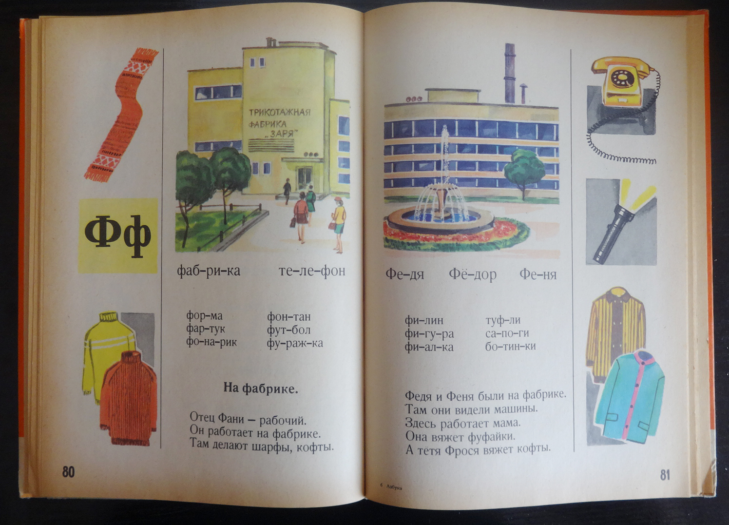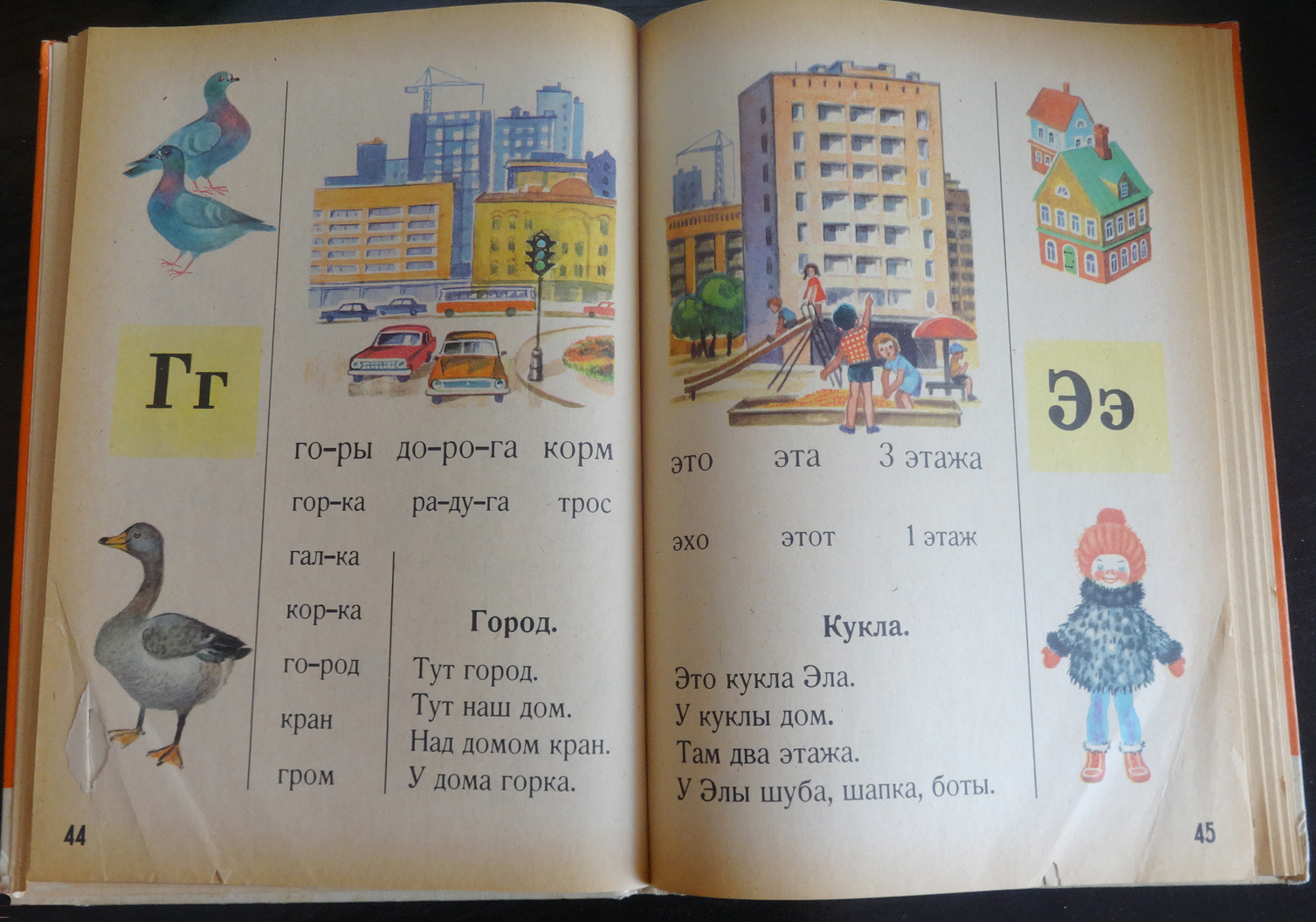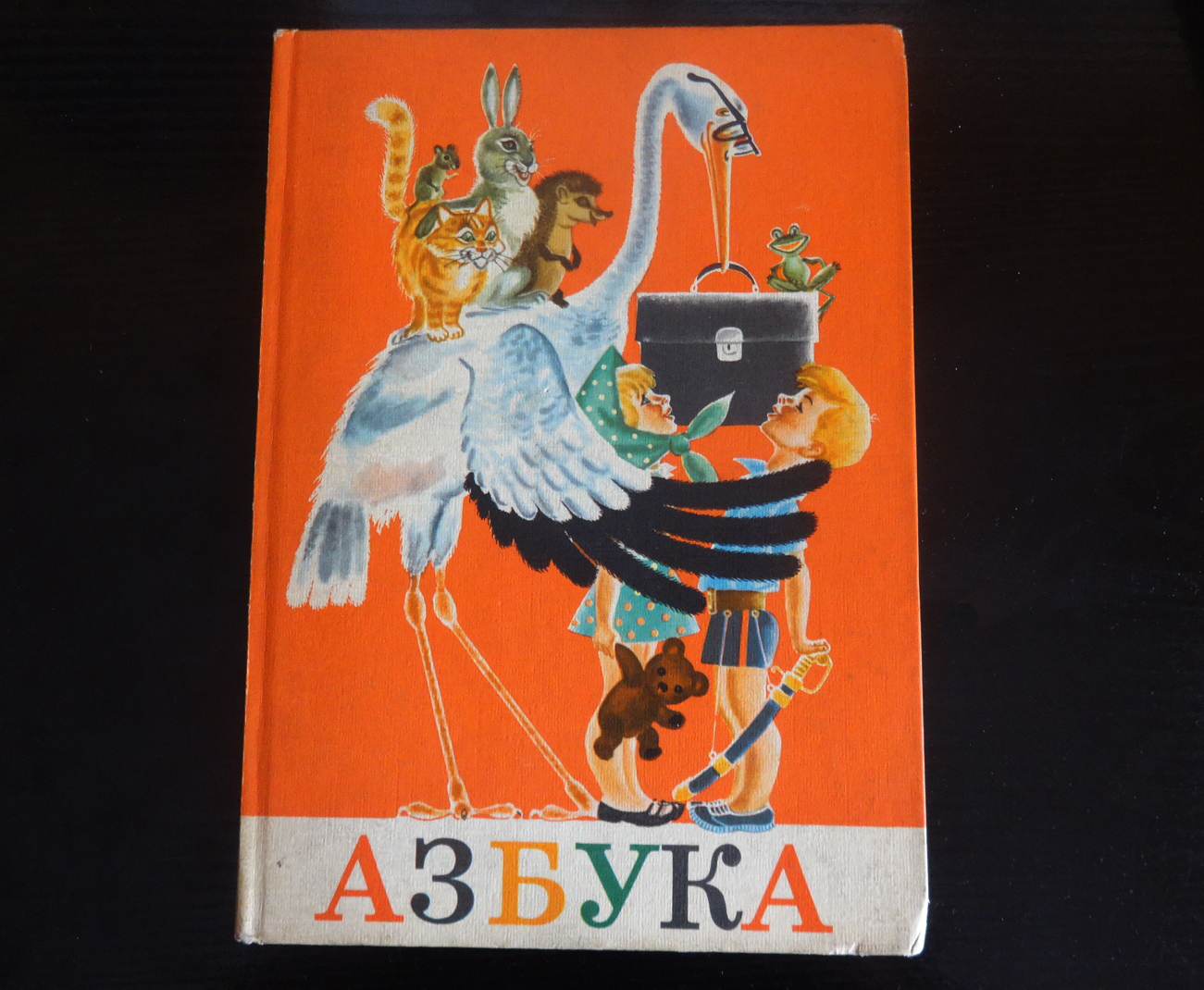 Este segundo libro fue editado en 1975, y yo fui al colegio en 1988/89, así que seguramente entonces ya se utilizaba alguna edición posterior. Pensé que no me acordaría de mi primer libro de texto, pero me equivocaba. La memoria no tardó ni un instante en trasladarme a aquellos años de mi infancia y mentalmente toqué con mis dedos la cubierta lisa y brillante de aquel “Букварь” (un abecedario, igual que “азбука”) de color azul que tenía en su portada a unos escolares con el uniforme y una letra A. Tecleé en el Google la palabra “букварь” y me salieron unas cuantas cubiertas, antiguas y modernas, y entre ellas la que recordaba. Guardé la imagen que en el comentario ponía que la edición era del año 1987: