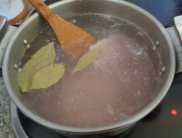 1. Para empezar hay que hacer el caldo. En principio valdría cualquier tipo de carne que tenga hueso, pero yo evitaría carnes grasientas y también las más insípidas, como carne de pollo o pavo. Aunque en realidad un borsch perfecto no depende tanto de la carne como de la remolacha, pero de esto hablaré más tarde. Al caldo le echamos unas hojas de laurel y dejamos que se haga a medio fuego durante unos 45-60 minutos.