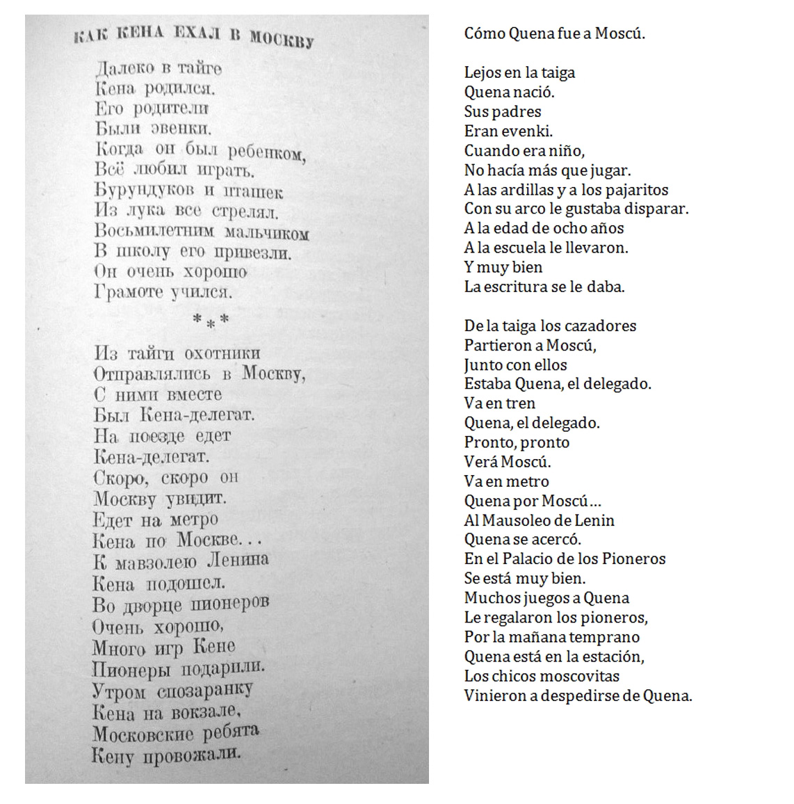 "Como Quena fue a Moscú" (en original, en ruso y en español):