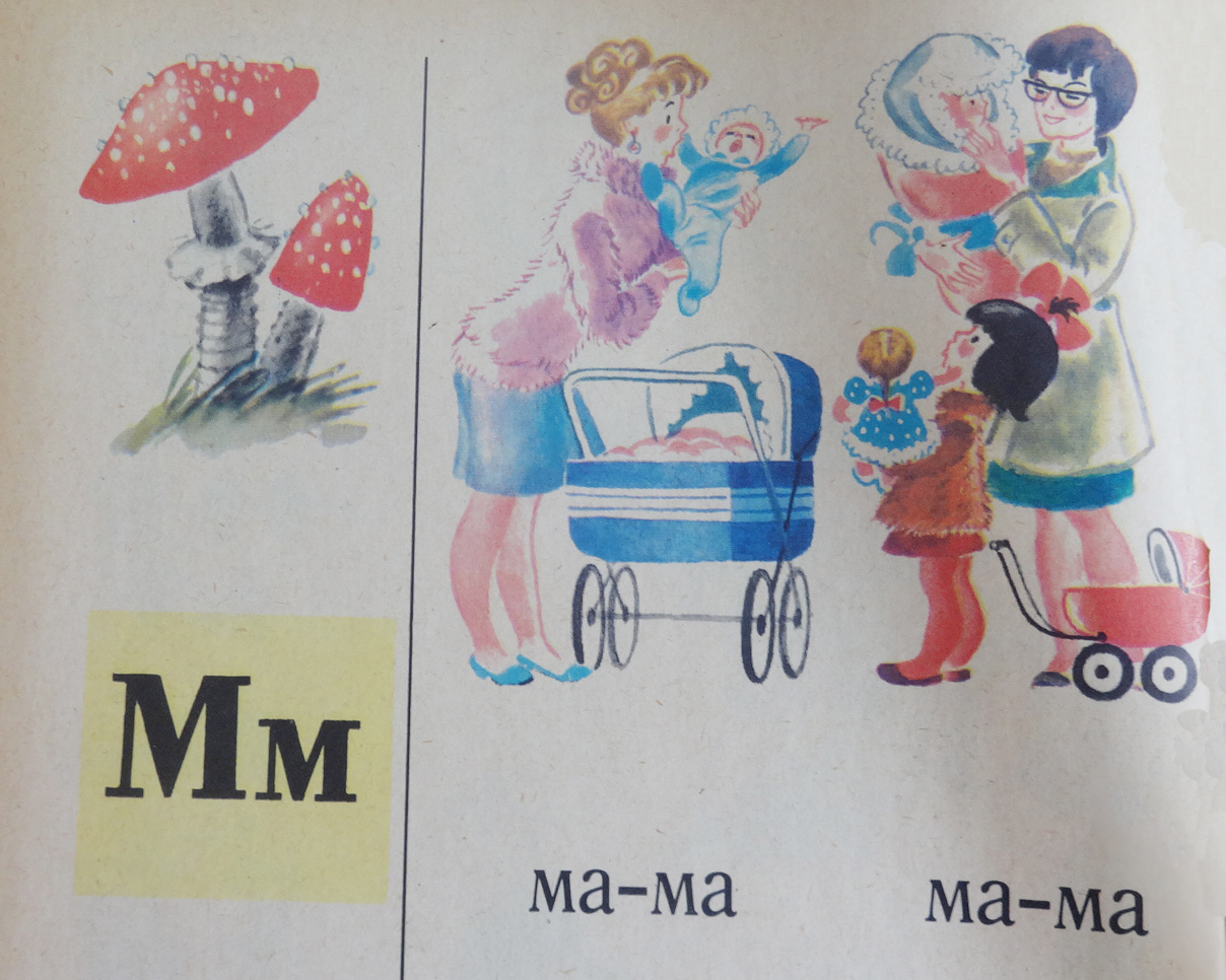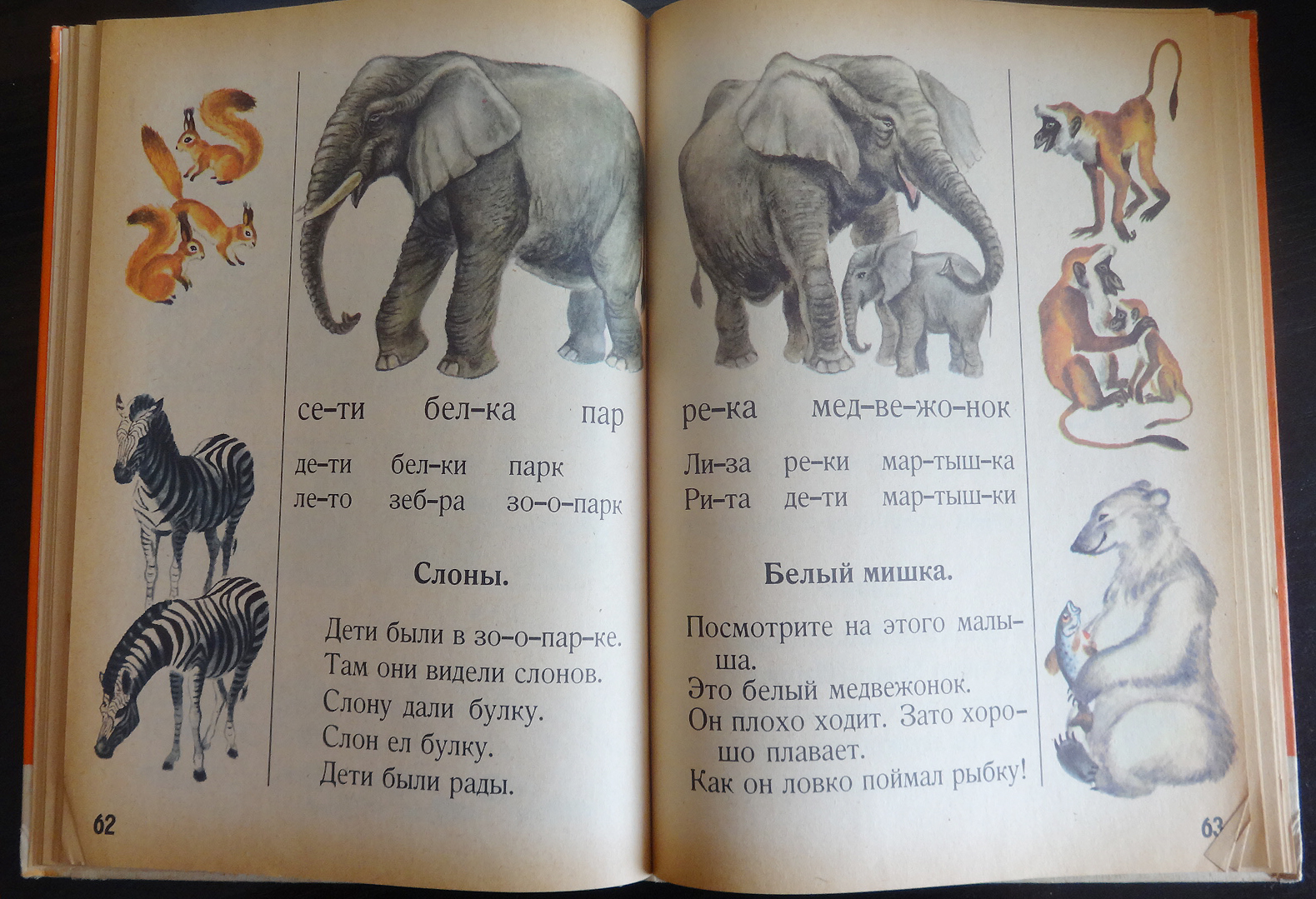 Este segundo libro fue editado en 1975, y yo fui al colegio en 1988/89, así que seguramente entonces ya se utilizaba alguna edición posterior. Pensé que no me acordaría de mi primer libro de texto, pero me equivocaba. La memoria no tardó ni un instante en trasladarme a aquellos años de mi infancia y mentalmente toqué con mis dedos la cubierta lisa y brillante de aquel “Букварь” (un abecedario, igual que “азбука”) de color azul que tenía en su portada a unos escolares con el uniforme y una letra A. Tecleé en el Google la palabra “букварь” y me salieron unas cuantas cubiertas, antiguas y modernas, y entre ellas la que recordaba. Guardé la imagen que en el comentario ponía que la edición era del año 1987: