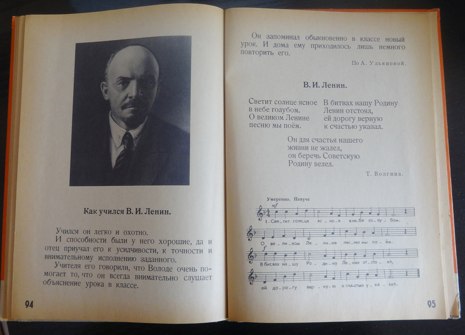Pero el libro que tengo ahora en mis manos es más antiguo, de las ediciones anteriores, y los escolares de 6-7 años de los años 70 lo reconocerían: Con este libro aquellos niños soviéticos aprendían a leer, comenzando por sílabas, luego pasando a palabras sencillas, luego a otras más difíciles, luego a frases y pequeños diálogos para, al final, poder leer textos. Como podréis ver, a pesar de que sus páginas se parezcan mucho a las primeras páginas de cualquier libro de ruso para extranjeros, hay una diferencia muy grande. Las palabras no llevan acentos, y las frases, hasta las más sencillas, incluyen toda la gama de declinaciones y conjugaciones. A un niño ruso no le harán dudar las diferencias de terminaciones entre “Лара” y “У Лары”. Y desde pequeño sabe cómo se conjugan los verbos como “вязать” o “нести”. En las últimas páginas del libro salen dos textos emblemáticos: uno sobre Lenin y otro sobre Gagarin: Al hojear este libro enseguida me acordé de los cuadernos que teníamos todos los escolares soviéticos de las últimas décadas de la URSS, son estos: Aún no se ha acabado su producción y se pueden comprar, por eso los tengo aquí en casa y los prefiero para mis estudios. Los hay distintos: a rayas, a cuadros y, como este, preparados para que aprendan a escribir los más pequeños, con una raya inclinada que permite desarollar una manera de escribir más bonita. Qué tiempos aquellos… La_profe.