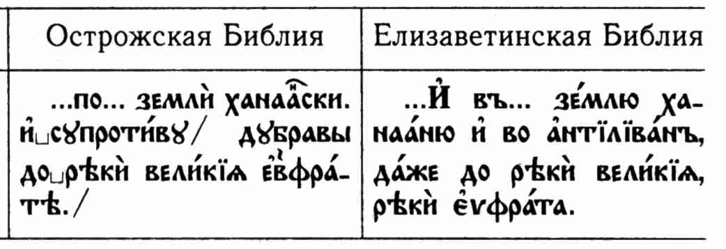 En Rusia la Biblia fue impresa en la traducción eslava eclesiástica unas décadas más tarde, en la primera de las imprentas, en 1581. Se llama "Ostrozhskaya" por haber sido publicada en la ciudad de Ostrog.