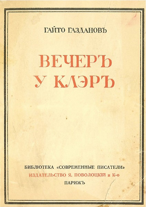 "Una noche con Claire".“En cualquier amor hay tristeza, la tristeza de la culminación y la proximidad de la muerte del amor, si es feliz, y la tristeza de la imposibilidad y la pérdida de lo que nunca nos perteneció, si el amor resulta imposible”.“Una noche con Claire” es la primera obra de Gazdánov. Fue escrita en 1929, publicada por primera vez en 1930 en París, en una editorial rusa y muy bien valorada por Bunin y Gorki y los críticos rusos en el extranjero. A pesar del éxito la novela no se volvió a publicar hasta 1979, cuando ya no estaba su autor. Después de aquella segunda publicación, americana a pesar de ser en original, la novela se editó en inglés en 1988, y sólo en 1990, cuando se publicó en la revista “Sovietski voin” (“El soldado soviético”), la pudieron conocer los lectores rusos.