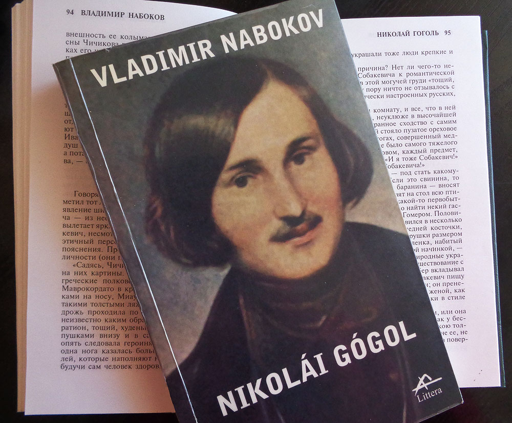 "Hablando en plata, viene a ser lo siguiente: si esperas averiguar algo acerca de Rusia, si estás ansioso por saber por qué los alemanes llenos de ampollas fallaron en su bombardeo aéreo, si lo que te interesa son “ideas”, “hechos” y “mensajes”, aléjate de Gógol. La horrible molestia de aprender ruso con el fin de leerle no te será reembolsada en el tipo de moneda que utilizas. Aléjate, aléjate. No tiene nada que contarte. Mantente alejado de la vía. Alta tensión. Cerrado per secula secularum. Evítalo, abstente, no”. El libro de Vladímir Nabókov que se titula “Nikolái Gógol” y que ha sigo publicado por primera vez en castellano en 2002 forma parte de un curso de literatura rusa que el famoso escritor escribió para los universitarios americanos y en el que entran también lecciones sobre Chéjov, Dostoiévski, Gorki, Tolstói y Turguénev. El original está escrito en inglés y yo lo tengo aquí en ruso, el curso entero en un solo libro.