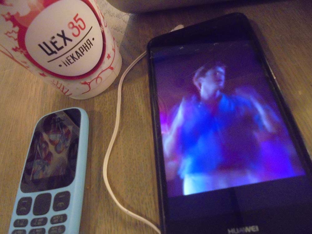 El frío que tenía dentro del cuerpo empezó a preocuparme y al salir del parque me dirigí a una calle que está al lado de la biblioteca, porque me pareció ver allí una cafetería. No tenía hambre, pero pedí un té y un trozo de la tarta “napoleón”, y al sentarme, seguí viendo una película en el móvil que llevaba ya semanas viendo.