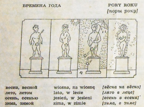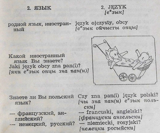 En mi casa en San Petersburgo había una guía de conversación "Как это сказать по-польски" ("¿Cómo se dice esto en polaco?") editada en Varsovia en 1963, y me gustaba hojearla cuando era pequeña. No sé quién la había comprado ni por qué razón. Mi padre sabía alemán y griego, mi madre tenía conocimientos básicos de inglés. ¿Cómo apareció por casa un libro de polaco? Ahora ya nadie me contestaría a esta pregunta.