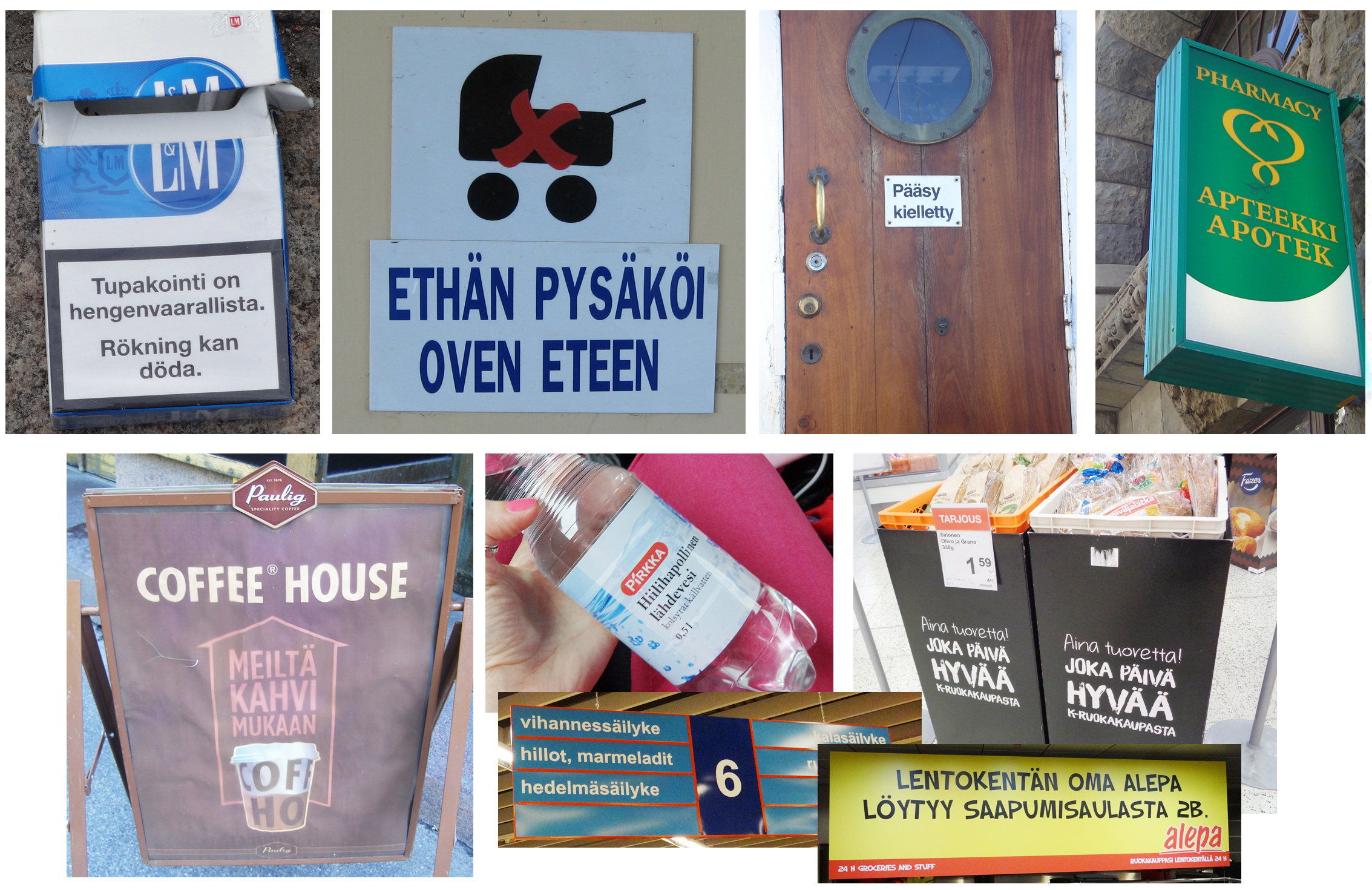 Durante el primer viaje apenas pude añadir algo a aquellos escasos conocimientos que tenía, pero recuerdo que la sensación de no poder leer ni un solo cartel en Helsinki, ni una sola palabra en ningún menú me fue muy molesta. No había sufrido un impacto parecido en mi vida hasta entonces. Había podido descifrar muchas palabras escritas en holandés viajando con KLM y haciendo escala en Ámsterdam (fue posible gracias a mis conocimientos de inglés, claro), pero aquí, en el país llamado Suomi… ¡¡nada de nada!!