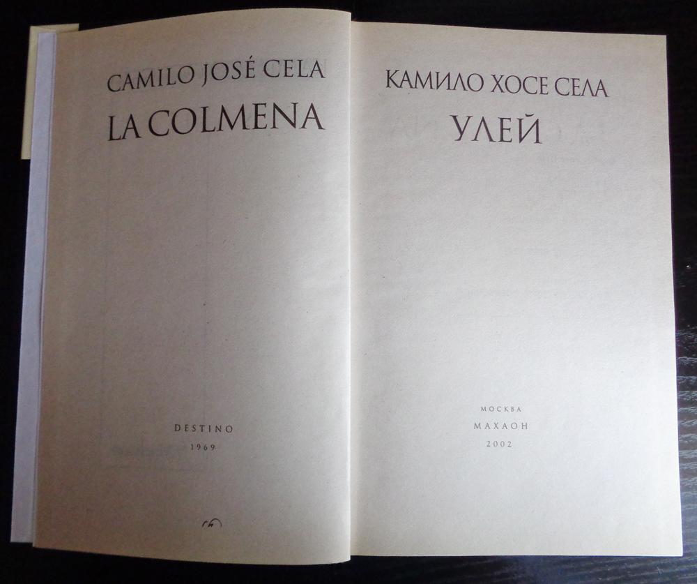 Hubo una época en la que no leí otra cosa que novelas de autores españoles e hispanos, pero, como aún me era imposible leerlos en original, me los compraba traducidos al ruso. También los cogía en la biblioteca del barrio. Me guiaba por los nombres de los autores, por sus países de origen, pero también me era imprescindible el saber quién era el autor de la traducción. Fue entonces cuando conocí nombres de los traductores rusos de la literatura en español: Geleskul, Trauberg, Lysenko, etc. Aquellos libros quedan en las estanterías de mi casa en San Petersburgo y sólo uno de ellos está aquí conmigo: “La colmena” de Camilo José Cela, editada en Moscú en 2002, traducida por E. Lysenko, el libro de la foto.