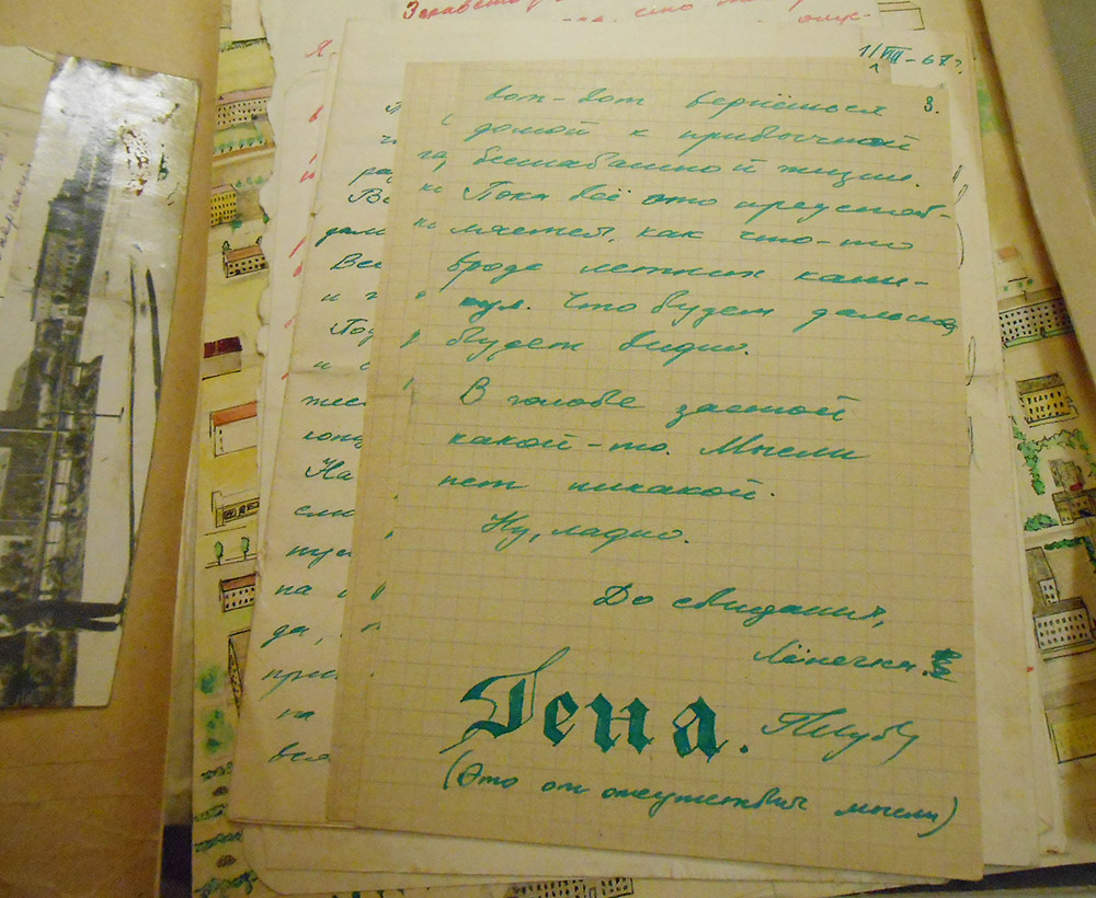 Juntos estudiaron arquitectura en un colegio técnico, podían haber ido juntos a hacer la mili, pero mi padre no fue por razones de salud, y su amigo Guena, “Guenka” Shuválov, como le llamaban en mi familia, sí fue. A la Marina. Y mientras durante tres años estuvo trabajando para el Ejército en un cuartel al lado de Kaliningrado, se escribieron cartas. Cuando volvió, siguieron haciendo la vida de antes ya siendo universitarios. Ambos trabajaron de arquitectos en en el Instituto de Proyectos, ambos se casaron tarde…