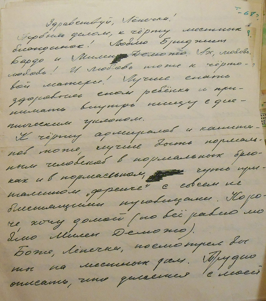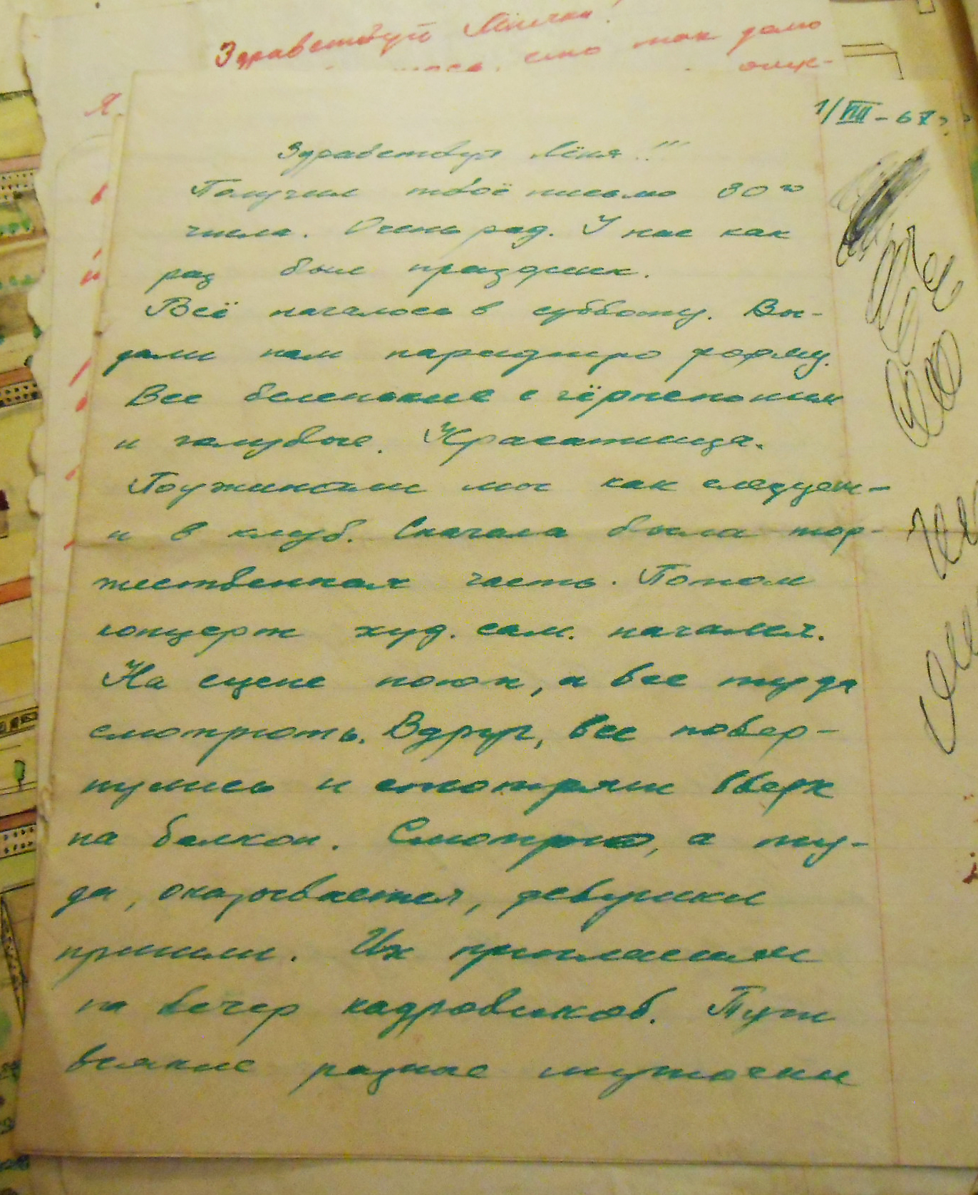 Poco a poco me siguen llegando cartas. He recibido hoy una de Yefímova. Y la última carta tuya se ha considerado todo un récord gracias a su tamaño y su originalidad.