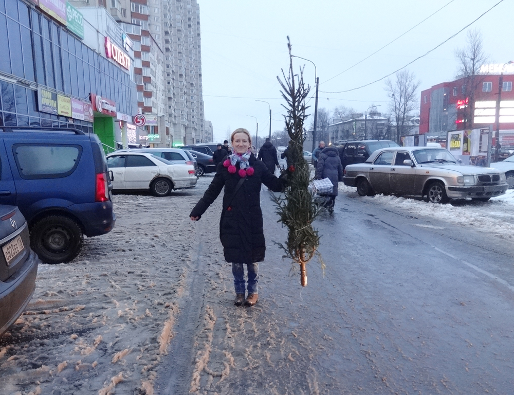 Entramos en una farmacia para comprar unas gotas infantiles para el catarro, luego compramos unos regalos para los niños (más regalos para el montón ya preparado) en la tienda de juguetes “Deti” y al final nos acercamos a un puesto de venta de árboles de navidad naturales. Abetos. El señor que los vendía nos enseñó dos o tres. Eran todos completamente idénticos.