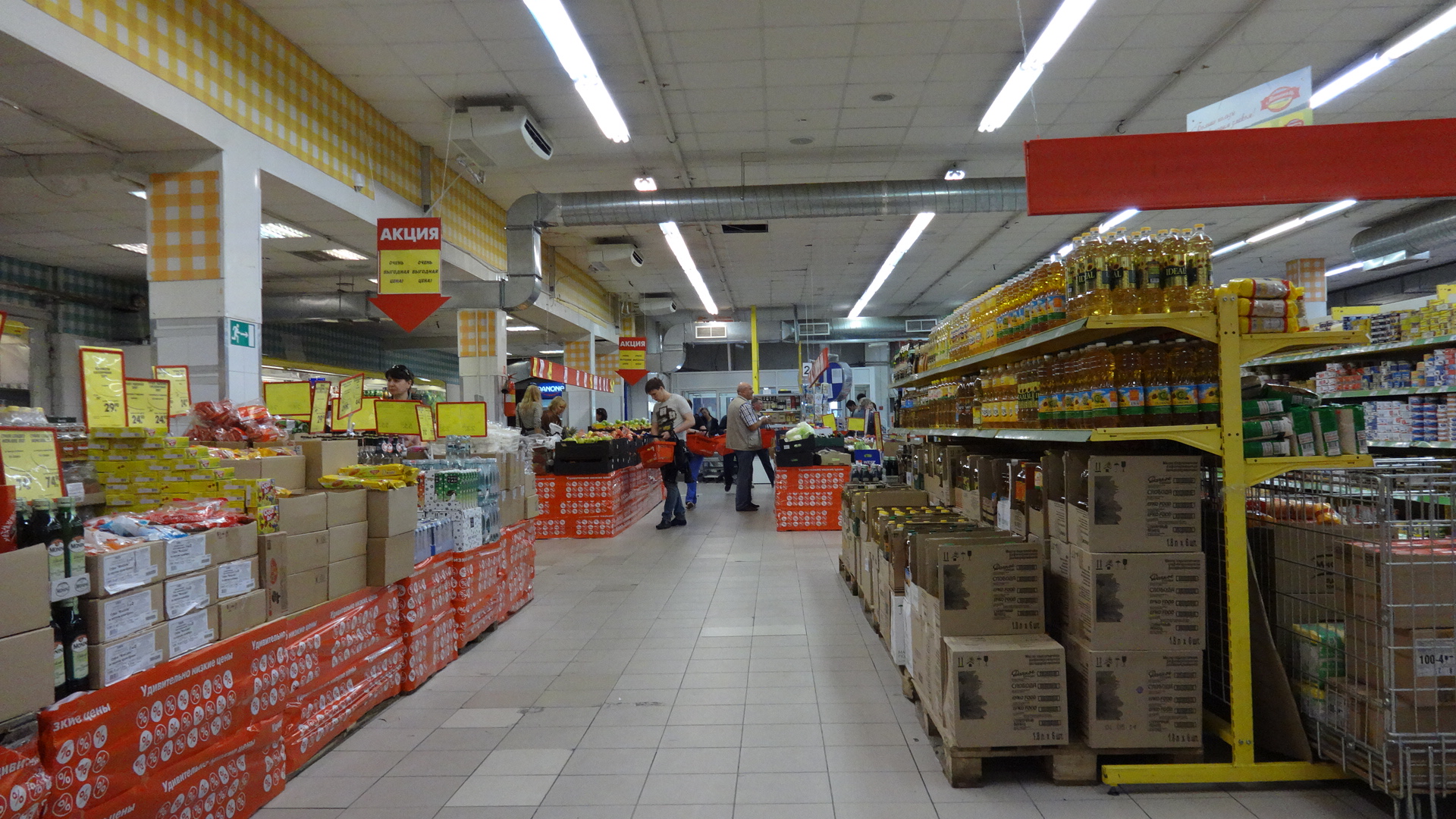 En San Petersburgo suele haber mucha diferencia entre un supermercado de un barrio dormitorio y uno que está situado en algún centro comercial de la zona turística.