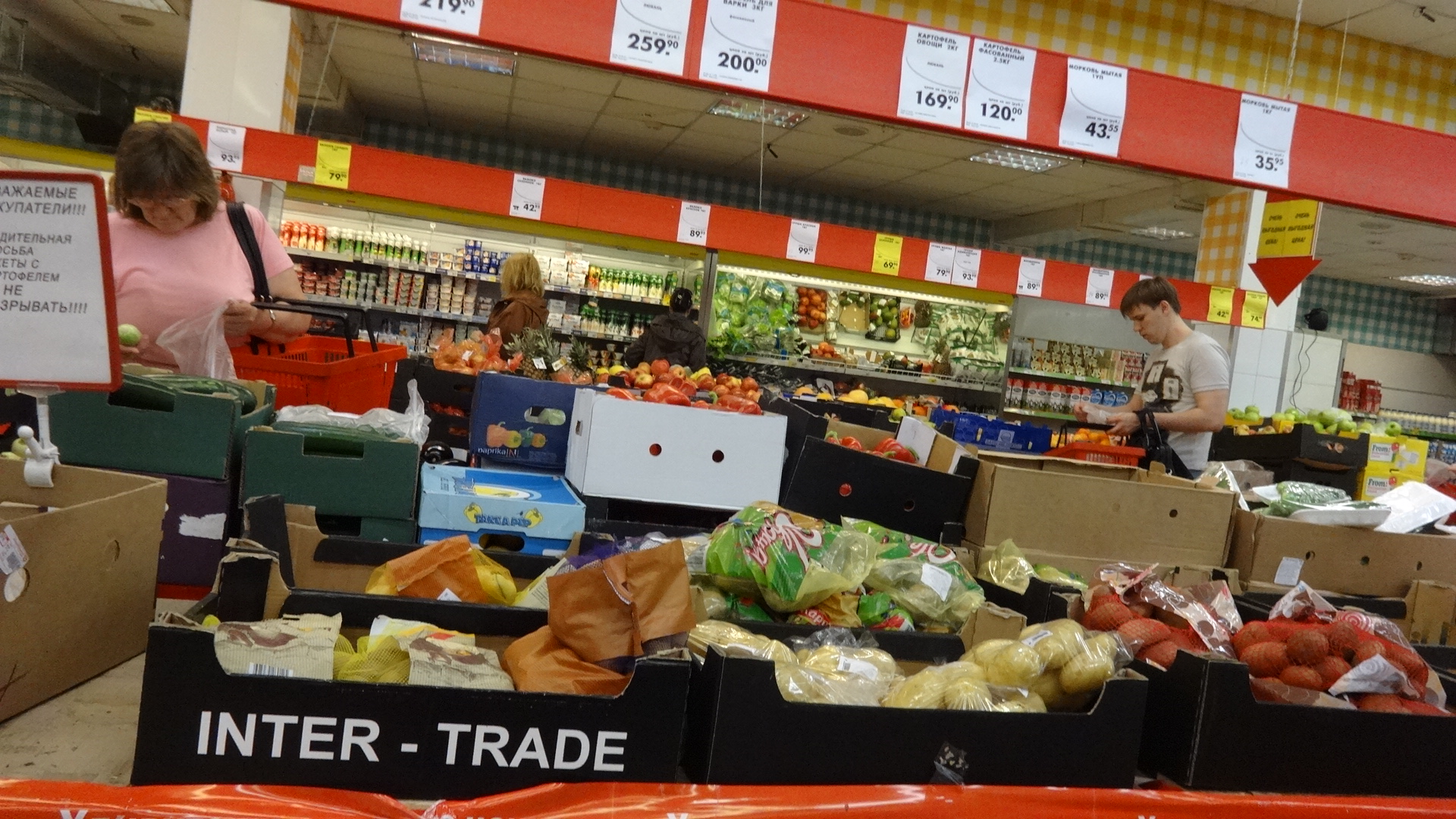 Tanto en los supermercados periféricos como en los céntricos falta una cosa que para muchos puede ser esencial: fruta y verdura de buena calidad. En España la gente está acostumbrada a tener frutas y hortalizas del país durante todo el año, y a comprarlas de calidad en cualquier sitio que las vende. En los supermercados de San Petersburgo las manzanas son italianas o argentinas, las naranjas españolas, los plátanos son ecuatorianos, etc. Algunos supermercados ni ofrecen información del origen del producto, se sabe que es importado y punto. Los empleados no intentan colocar la fruta de la manera que parezca apetecible, quitando las piezas que empiezan a pudrirse. La colocan en el apartado de fruta en cajas o en bolsas y allí queda. Por eso la gente que prefiere comer fruta de calidad la compra en las plazas de los mercados, en las que la venden los agricultores rusos, georgianos, armenios, etc. Siempre es fruta de temporada y está muy bien.