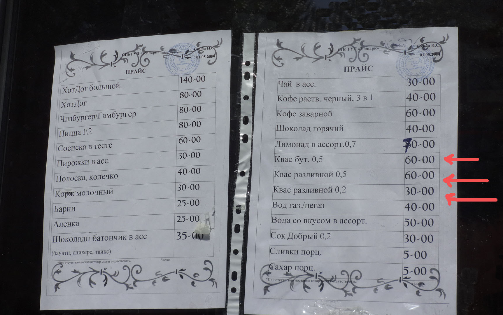 Y luego nos tomamos unos kvas, que es una bebida antigua rusa, muy refrescante. En los puestos de comida y bebidas del zoo se venden palomitas, algodón de azúcar y otras cosas, y para comer en plan serio se puede visitar una pizzería.