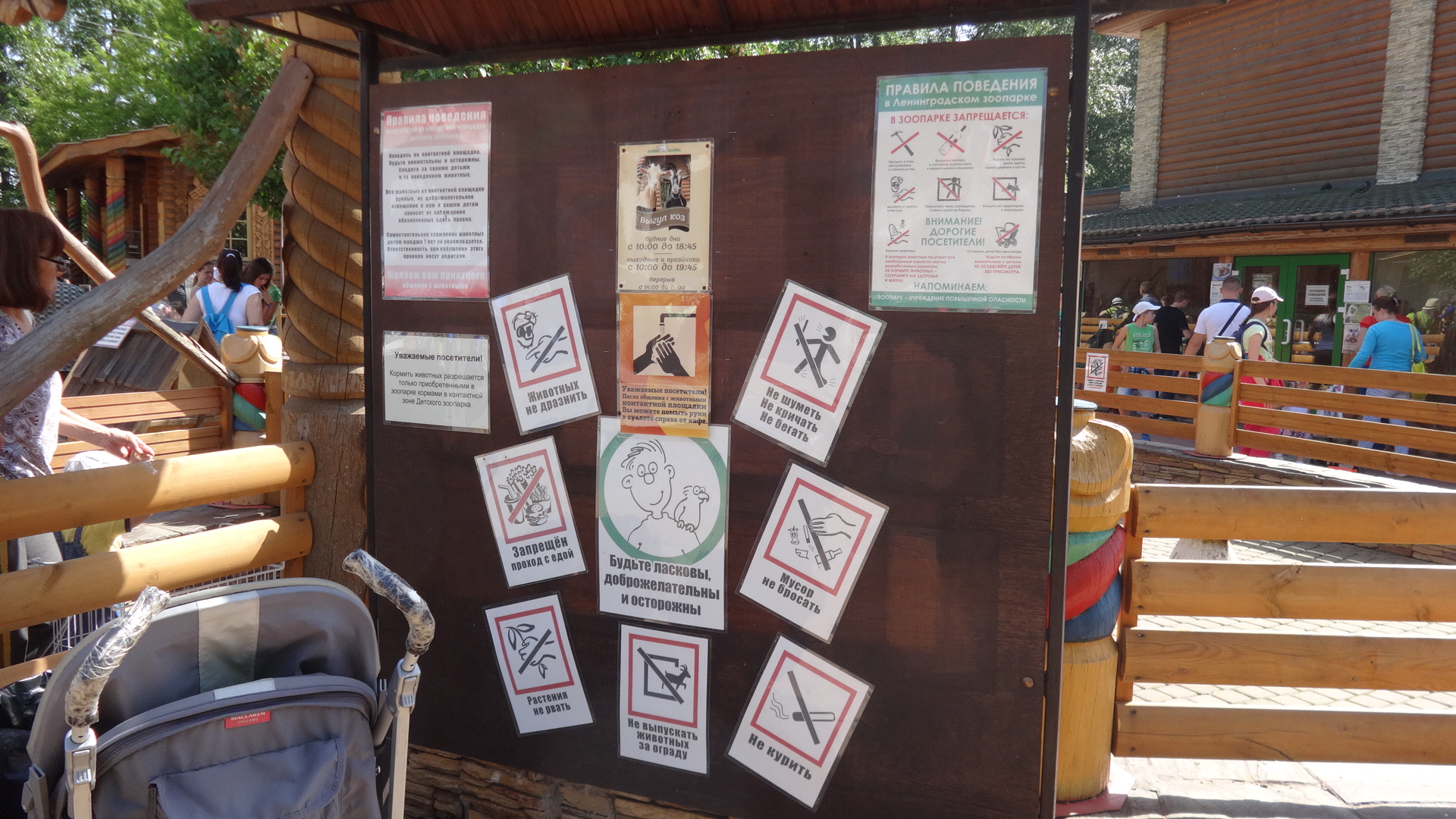 Para ir al Zoo de San Petersburgo hay que salir en la parada de metro “Górkovskaya” y atravesar un parque que lleva a “Music Hall”, al Planetario y al mismo Zoo. Está abierto todos los días a partir de las 10, la entrada para un adulto vale 400 rublos (9 euros más o menos), los niños menores de 4 años pasan gratis y a partir de esa edad pagan 50 rublos (1 euro). Mi hija, que aún no ha cumplido dos años, no pagó nada, yo pagué la entrada de 400 rublos y mi madre, siendo una persona jubilada, pagó 50 rublos.