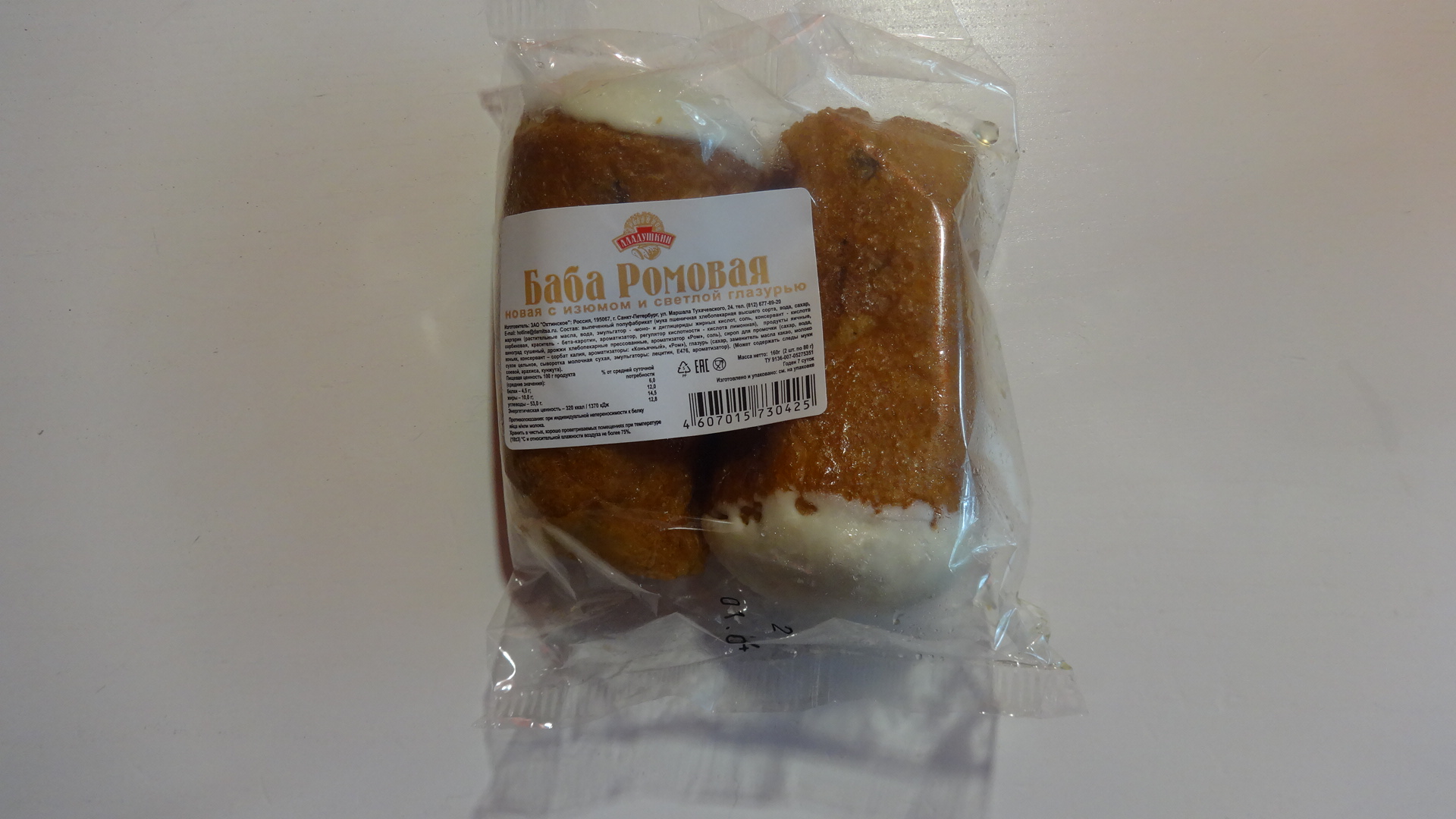 Ромовая баба (или ром-баба) (no he encontrado mucha información sobre este producto, pero es posible que su creador fuera un polaco aristócrata del siglo XVIII. Un bollo dulce con pasas, empapado de sirope de ron, o de cualquier otro alcohol).