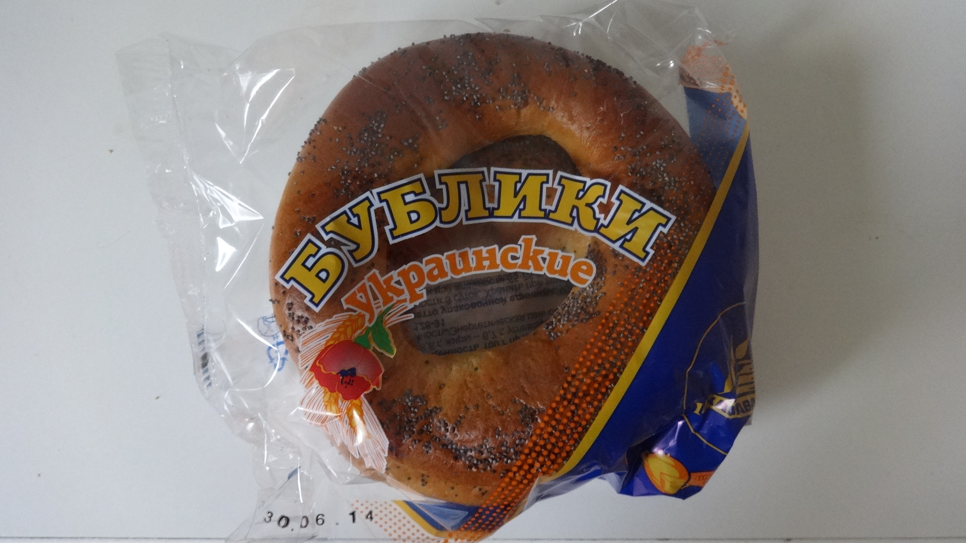 Бублик (un panecillo ruso y ucraniano muy antiguo también, es relativamente dulce, tiene forma de una rosquilla, su tamaño es el de un CD y por encima suele tener semillas de amapola).