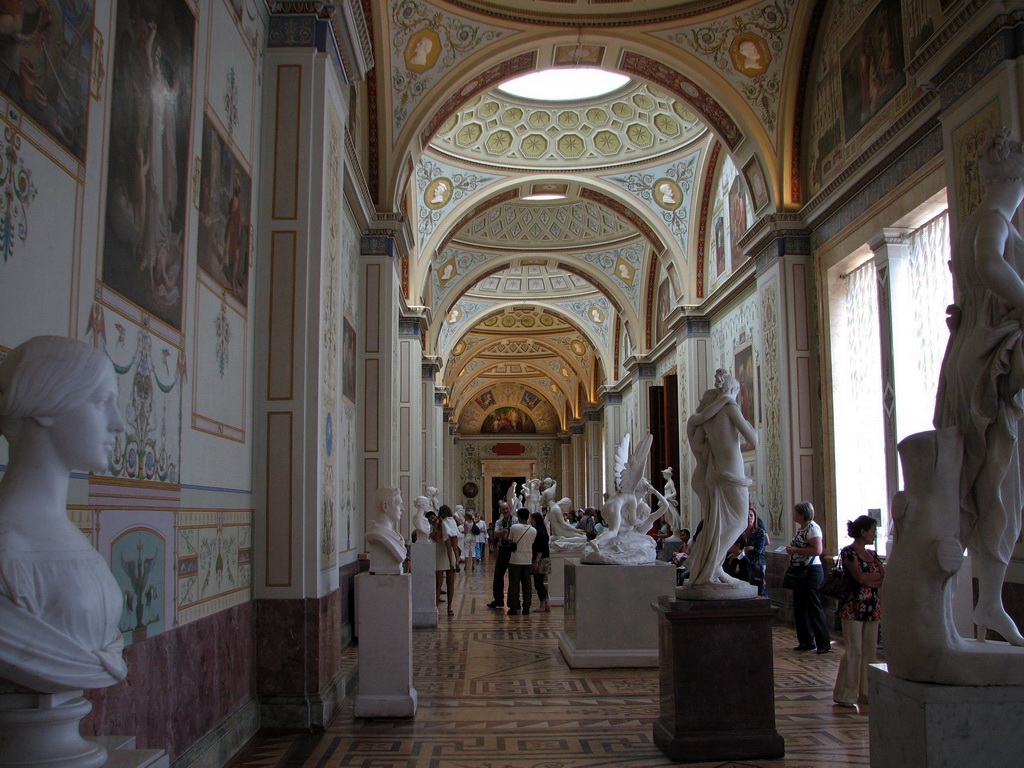 La verdad es que en aquellas salas nunca hay mucha gente. Un turista ruso de alguna ciudad de provincias quizá se acerque a la famosa momia egipcia que aparece en los folletos, pero luego ya saldrá de aquella exposición para ir a ver “lo esencial”. Lo mismo harán los extranjeros que sólo tienen un día para visitar el Hermitage y no pueden permitirse verlo todo. Y cuando se trata de grupos de turistas, los guías no suelen llevarlos allí por miedo de que se aburren de tanta estatua. Pero es un alivio estar entre estatuas después de haber tenido que aguantar a las multitudes en las colas. Qué rostros tan finos, que cuerpos tan esbeltos y qué sensación de paz…