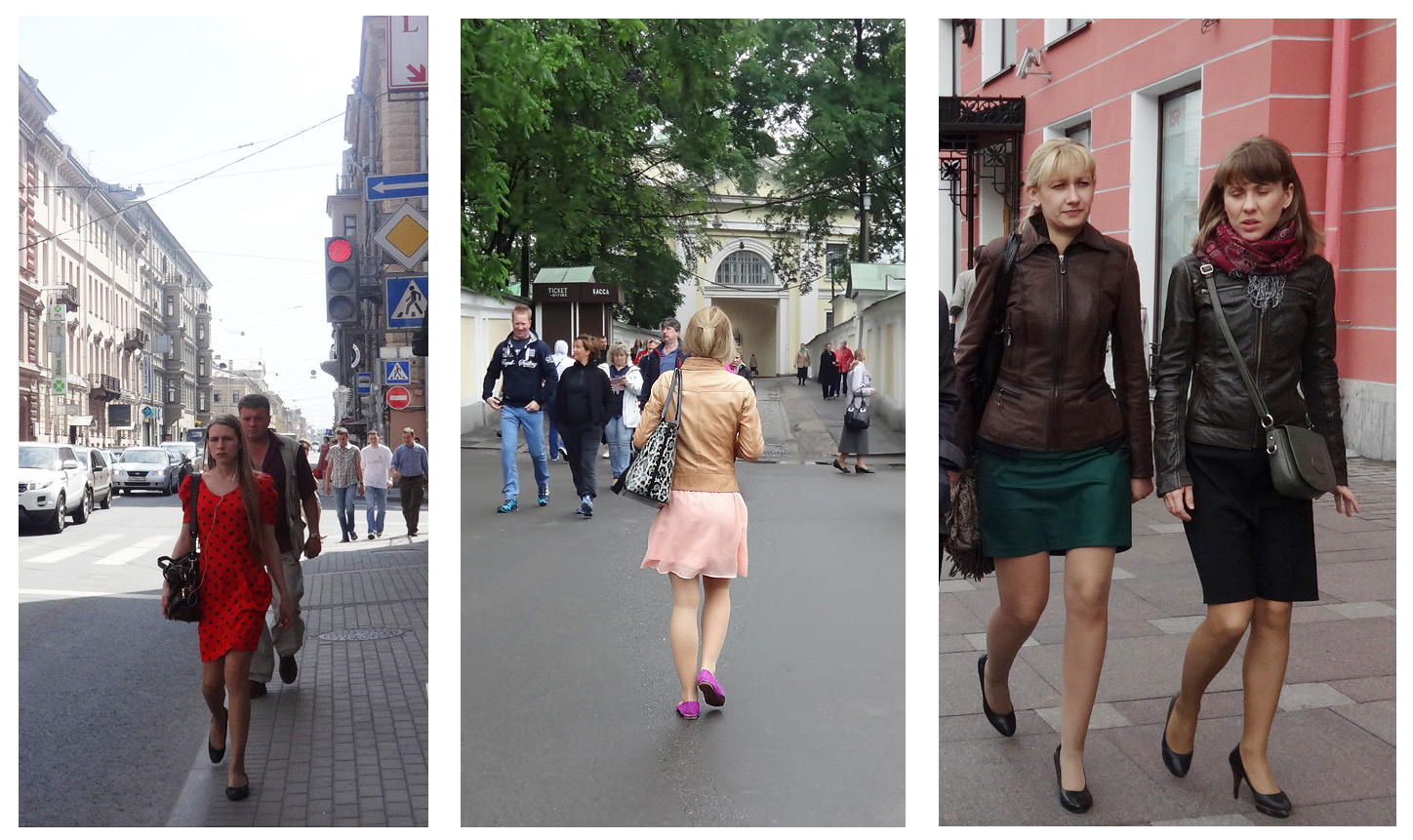 Lo que también noté este verano en San Petersburgo es que los tacones de vértigo que parecían el único calzado de las señoritas de Piter de hace unos años y que éstas llevaban puestos ya desde por la mañana, ahora han sido parcialmente reemplazados por algo más cómodo. Y si antes una chica petersburguesa que ciudaba su look e iba a la moda presumía de los zapatos de tacon de 10 sentímetros (quizá más), ahora prefiere unas bailarinas o unas zapatillas Converse, algo que hace un tiempo era rarísimo.