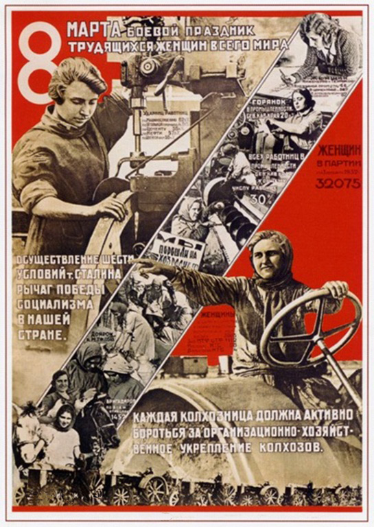 A partir de 1965 el 8 de marzo en la URSS se hizo día festivo y hasta adquirió sus propias tradiciones. En las fábricas se hacían comidas y conciertos para los trabajadores y las mejores obreras recibían premios y medallas. En la radio se podía escuchar discursos de los políticos sobre cómo iba mejorando la vida de la mujer soviética, sobre sus derechos (los mismos que los del hombre), su futuro, etc.