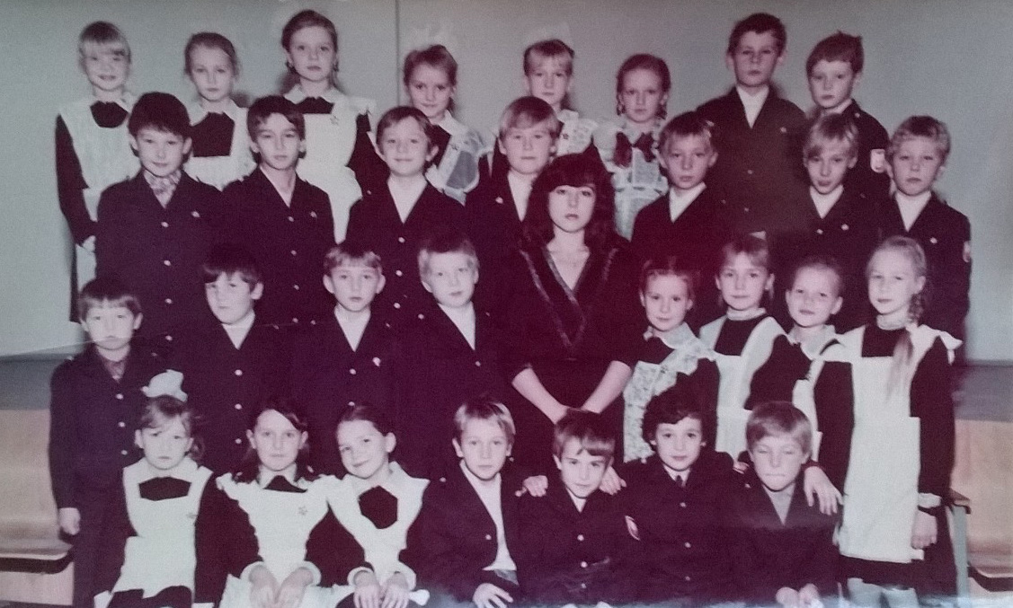 Para mí la escuela intermedia empezó cuando tenía 10 y no 11 años. No sé qué cambios hubo aquel año, pero tuvimos que saltar del 3º a 5º curso directamente y en vez de 11 años de estudios completos estudiar sólo 10. No dejaba de ser el 4º, pero se llamaba 5º. Nuestro grupo, el 3Д, fue reformado y entramos por partes en distintos grupos del 5º. Otro cambio de aquel año: fue el último año del uniforme escolar soviético. Luego simplemente se dejó de llevar.