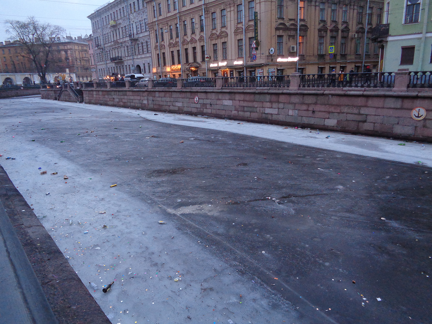 De todos los días que he pasado esta vez en San Petersburgo el 31 de diciembre quizá haya sido el más parecido a un típico día de invierno en León. De la nieve que había caído mucho antes de nuestra llegada ya sólo quedaban los restos que formaban islas de hielo sucio aquí y allá.