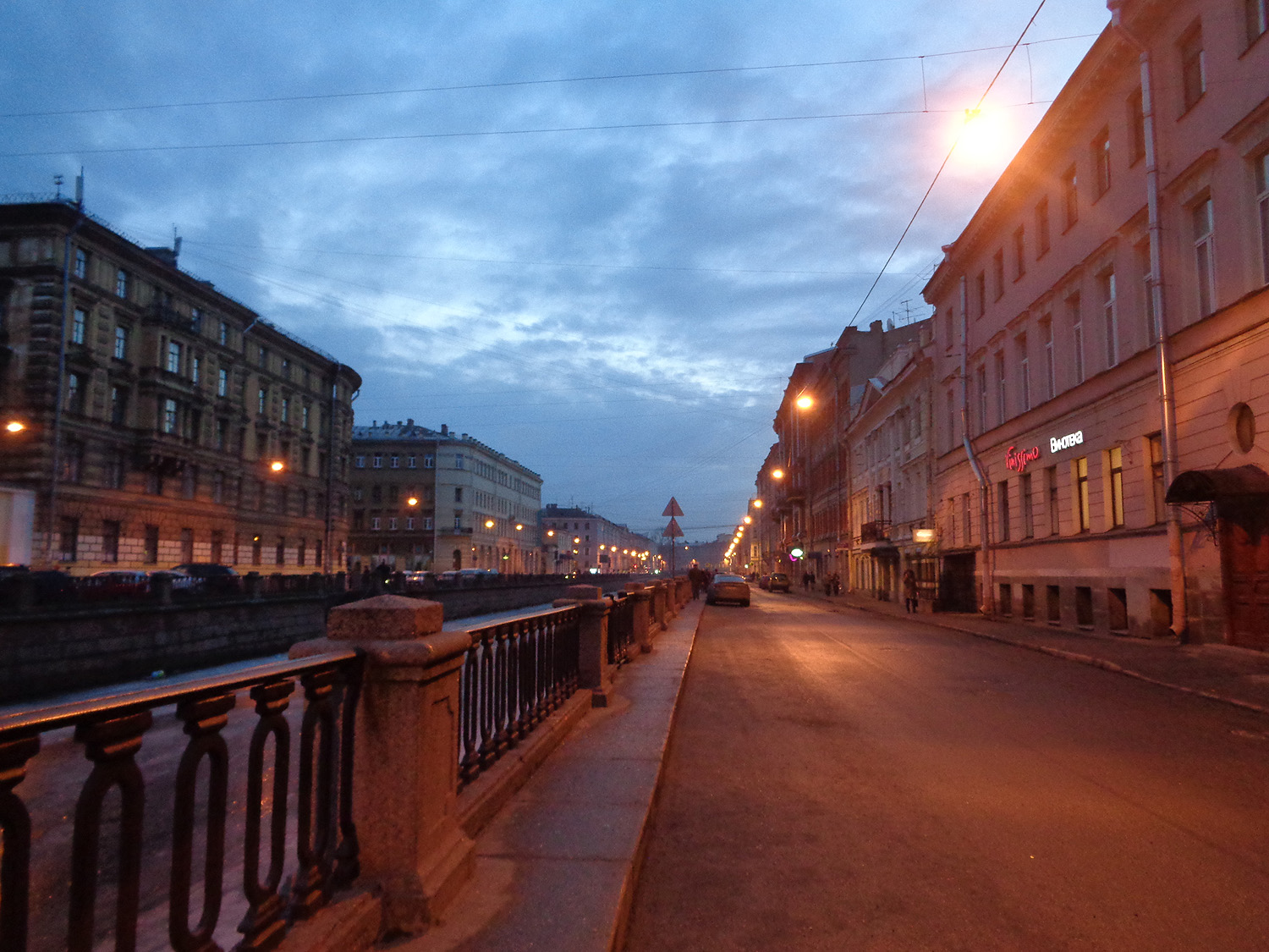 La tarde del día 1 de enero salí del metro en la parada de “Canal de Griboiédov” y miré alrededor. Después de una noche sin dormir la Nevski tan ruidosa, tan llena de luces intensas y de gente ociosa me parecía poco agradable y decidí alejarme de ella.