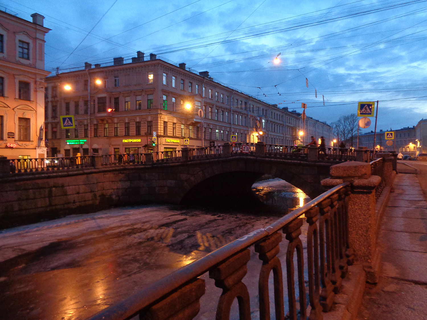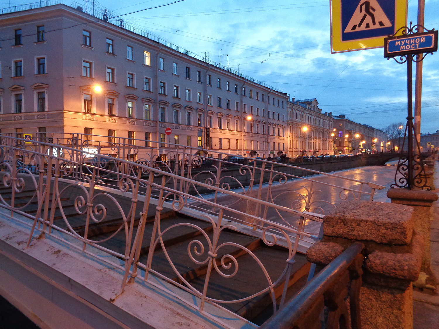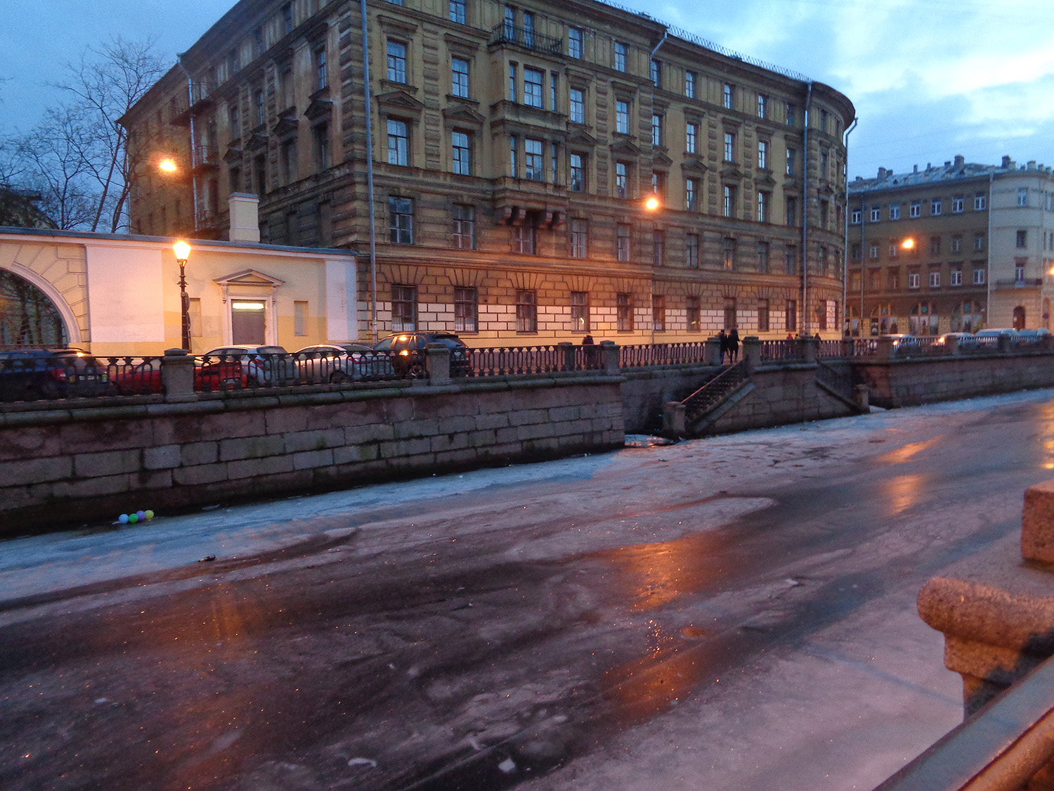 En un día de invierno húmedo, frío y sin nieve las aceras poco iluminadas del canal y las fachadas desgastadas de sus “casas de renta” pueden resultar depresivas a cualquiera. Ha pasado más de un siglo después de que fueron escritos el “Crimen y castigo” o “Humillados y ofendidos” , pero poco cambió el ambiente de la zona. Si Raskólnikov fuera una persona de verdad y volviera a su casa en Grazhdánskaya, 19, quizá le extrañaría ver una placa y un monumento dedicado al escritor y a su obra en la fachada, pero tardaría en darse cuenta de que el siglo ha cambiado ya dos veces. Lo mismo le pasaría a la vieja prestamista que vivía en el número 104 del malecón del canal Yekatieríninski y a Sonia Marmeládova cuya casa 73 queda en la otra orilla.Y también a otro personaje, Parfión Rogózhin de “El Idiota” que vivía al lado, en la calle Gorójovaya.