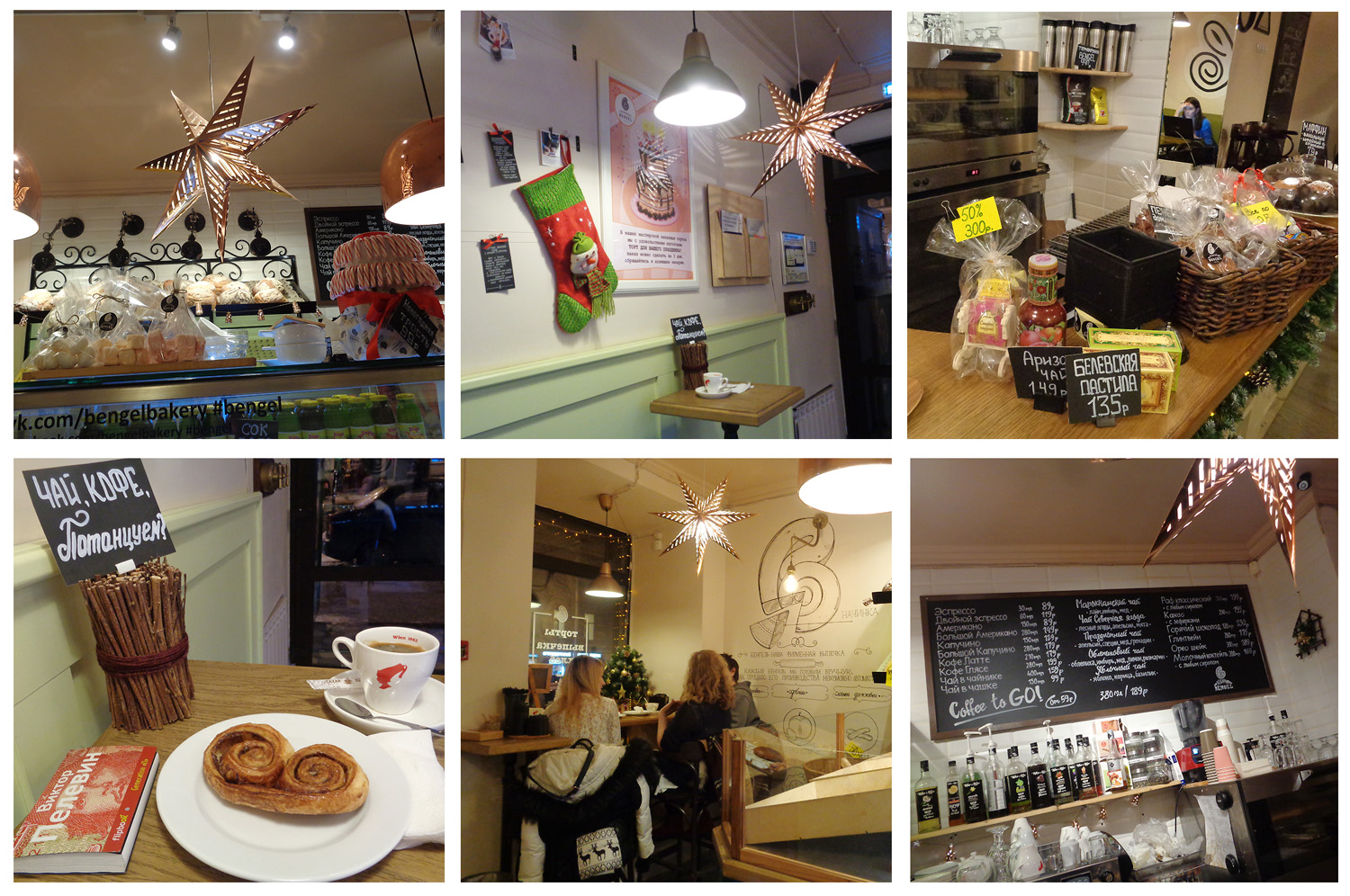 Llegué al final de la calle y por la avenida Zágorodny fui hasta la avenida Vladímirski sin dejar de fijarme en las cafeterías que había por allí. Encontré una muy curiosa: la “Panadería Bengel”. Era pequeña y parecía acogedora, y además, en su puerta había un anuncio muy prometedor: “Un café y un bengel = 99 rublos”. ¡Un café y un no sé qué “bengel” que parecía una especie de palmera con canela por tan sólo 1, 50 euros! Entré sin pensármelo dos veces. Y supe que el “bengel” es un bollo suizo. Dulce, muy apetitoso.