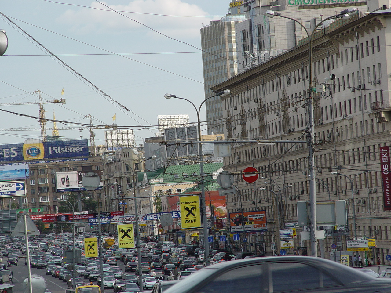 Al salir de la Noviy Arbat dimos con una avenida aún más grande que vá perpendicular a esta. ¡Menudo lío de tráfico que había allí! Nunca he visto tantos coches a la vez. Allí hay por lo menos doce carriles y todos están ocupados al máximo.