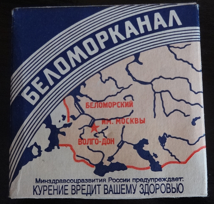 Sobre la caja de estos cigarrillos está dibujado el mapa de la parte europea de la URSS con los tres canales artificiales abiertos en los 1930-50.