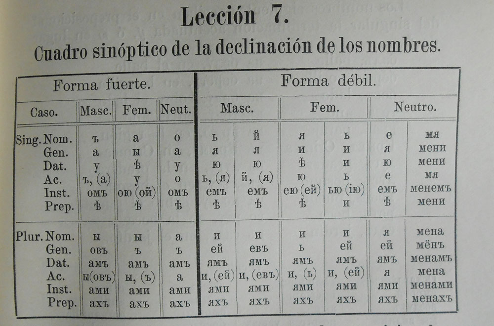 La "Gramática sucinta de la lengua rusa" fue editada en el año 1906 y está basada en el método Gaspey-Otto-Sauer. Busqué información sobre el método y sus autores y no encontré mucho, pero ahora sé que hay gramáticas de otros idiomas (inglés, alemán, francés) basadas en él y se siguen editando hoy día.