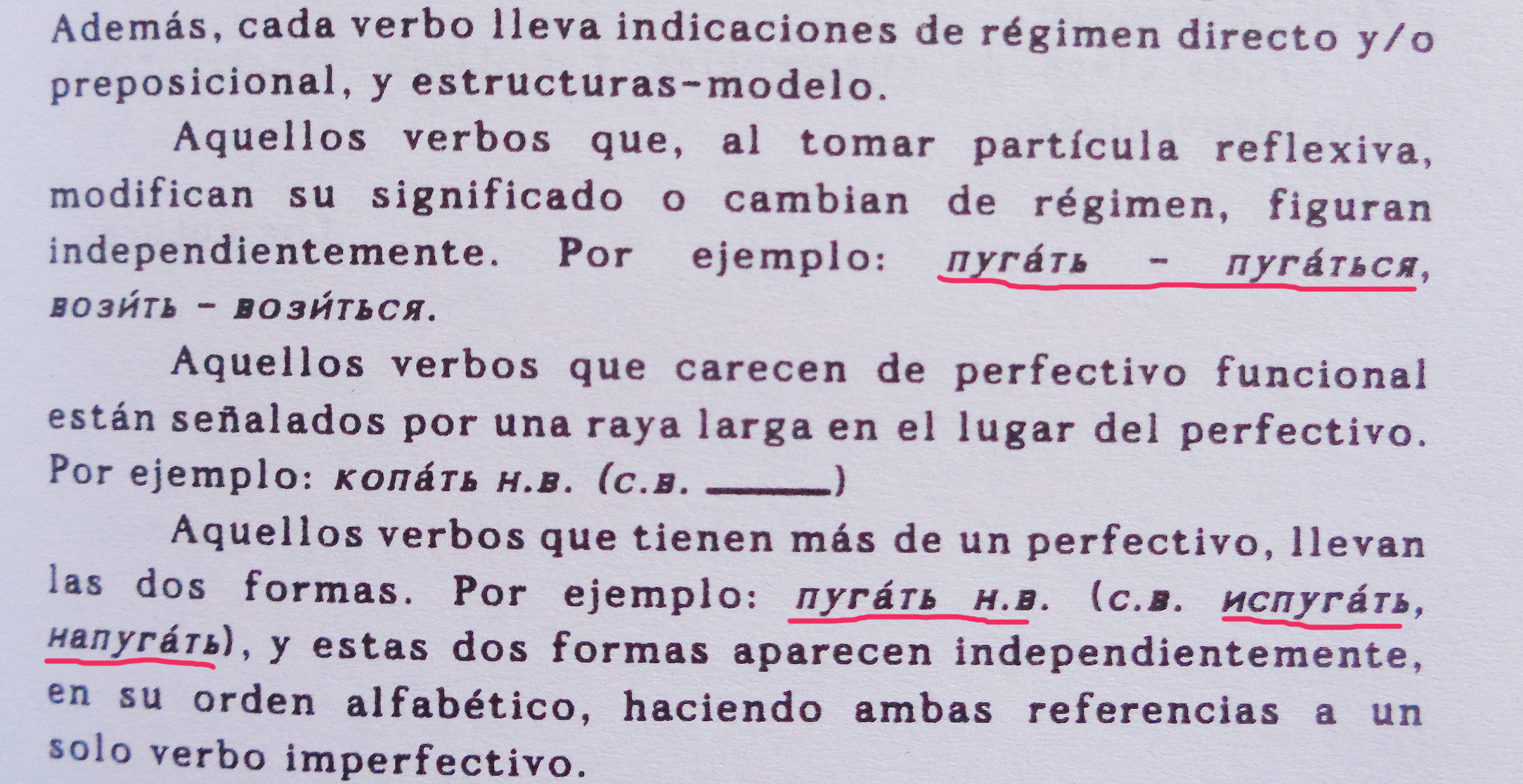 A pesar de esto último y del tamaño del libro, a un estudiante quizá le pueda asustar igual que a mí me asustó aquel diccionario. Además, el mismo verbo asustar (пугать-напугать) aparece en el prefacio como ejemplo para los comentarios, y en varias ocasiones, ¿será pura coincidencia?