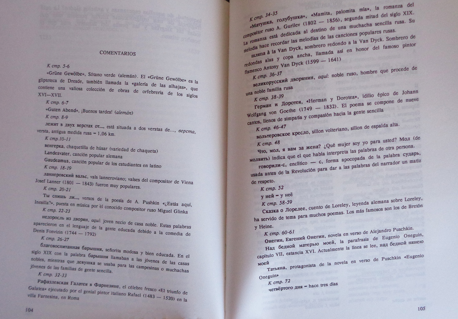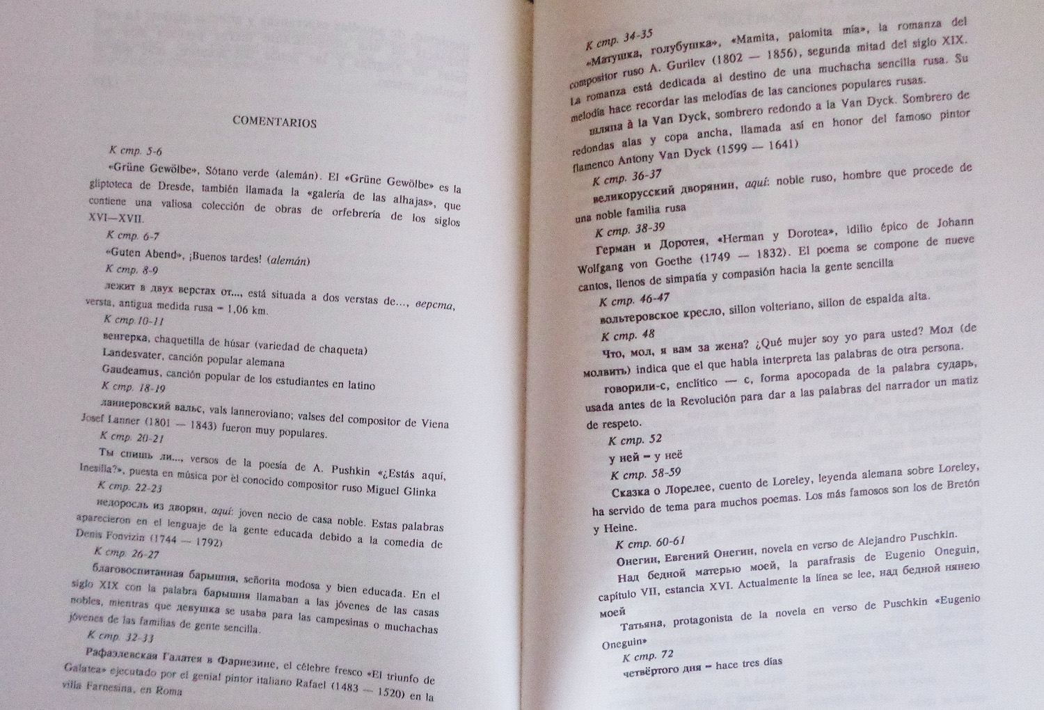 Seguí mirando el primero para luego escribir este artículo, pero al final terminé leyéndome el texto entero en ruso y disfruté mucho de esta lectura. Al leer me olvidaba del tipo de libro que tenía en las manos y me sorprendía al dirigir la vista a la siguiente página y ver de repente el texto escrito en español…