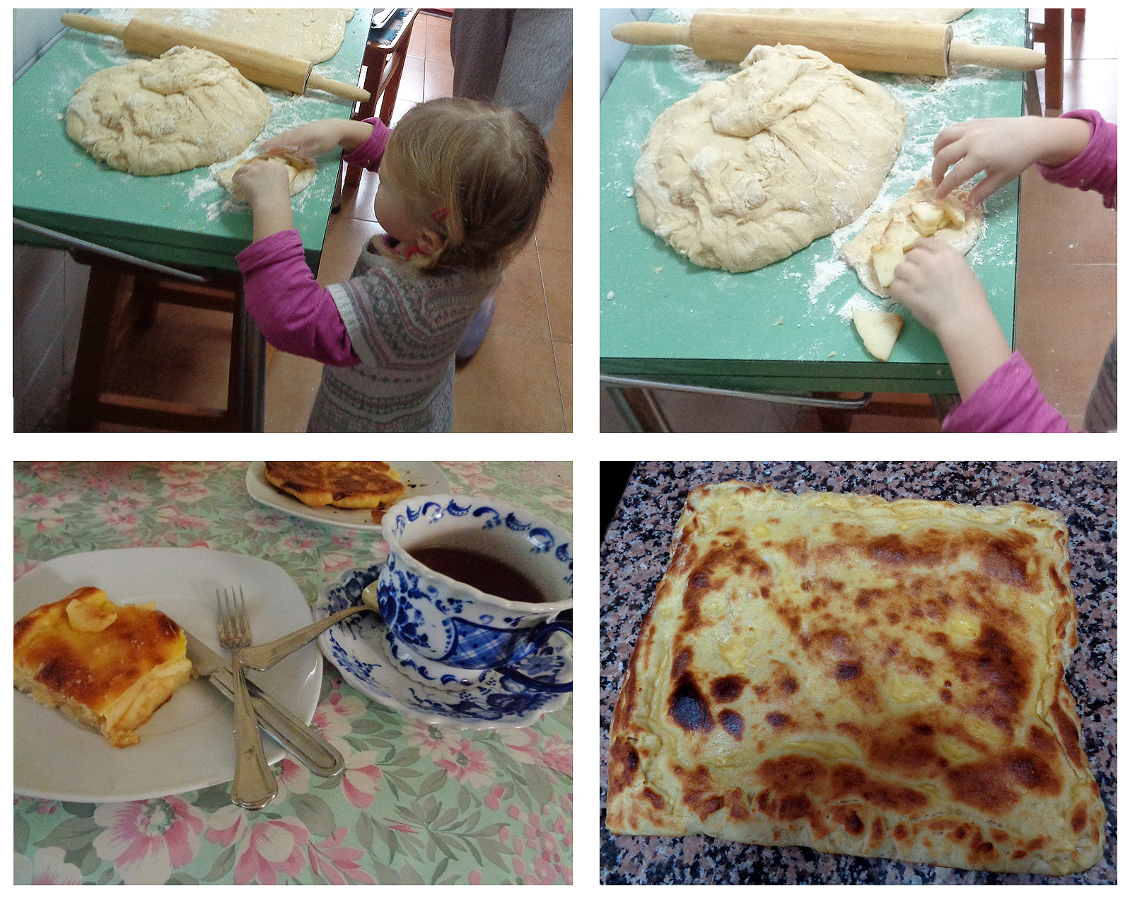 Antes de ayer por la mañana cuando mi suegra vino a ver a su nieta, le dije que por la tarde iríamos de visita a casa de unas amigas rusas. Ambas son de San Petersburgo, y una de ellas, además, veterana del Sitio de Leningrado, y nos invitaron para preparar juntas unas empanadas de manzana.