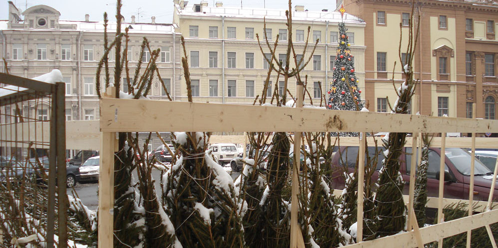 Cuando para el año nuevo quedan tan solo unas semanas, la gente pone en sus casas los árboles de navidad, los abetos, tanto artificiales como naturales. Se pueden comprar en los "ёлочный базар", unos puestos colocados en todos los barrios de cualquier ciudad. Siempre me ha gustado pasar al lado de un "ёлочный базар" y oler el abeto. Es uno de los aromas propios del Año Nuevo. El otro es el de las mandarinas.