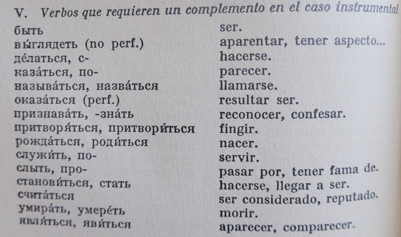 VERBOS QUE REQUIEREN UN COMPLEMENTO EN EL CASO INSTRUMENTAL