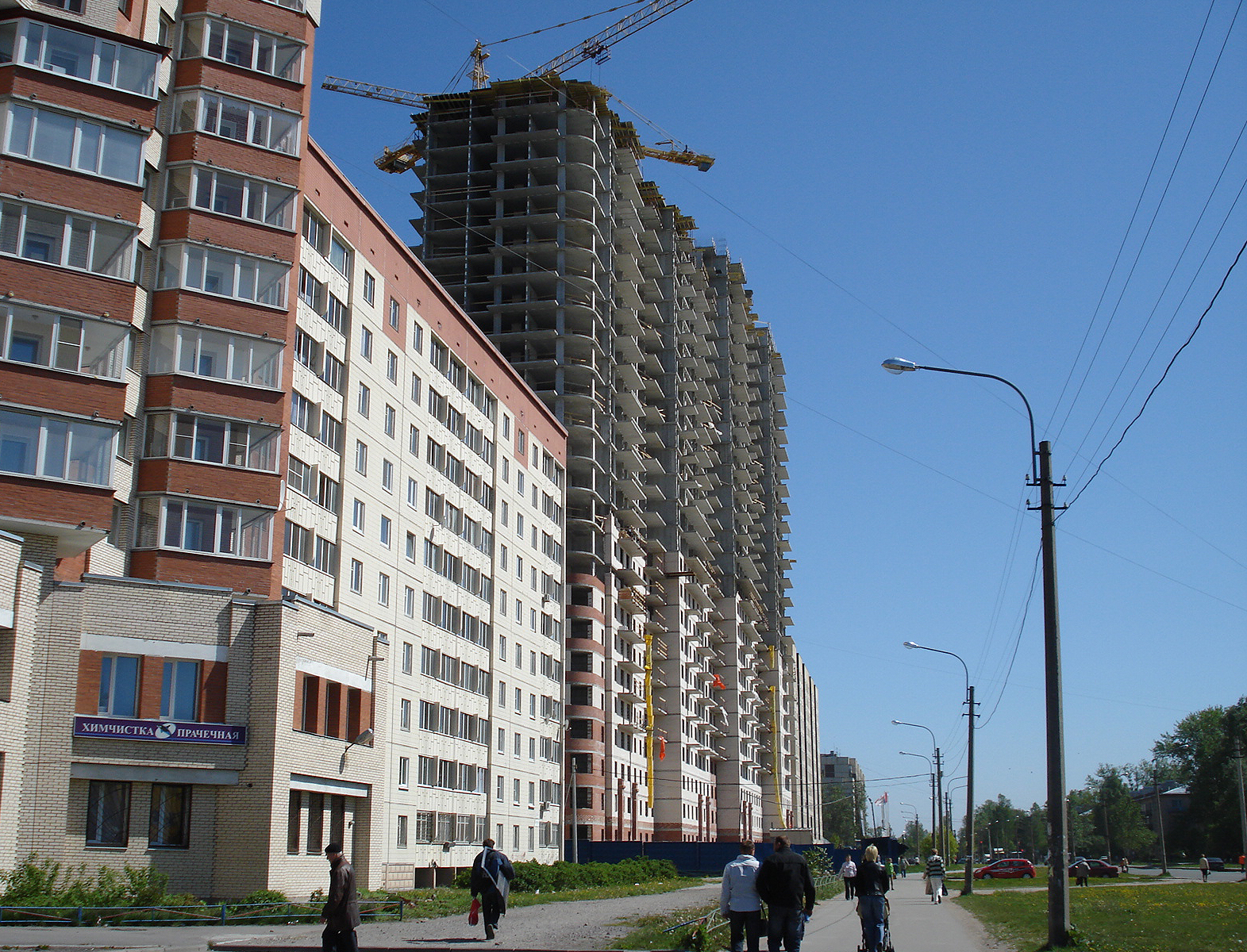 Para los años 1970 el barrio contaba con una estación de ferrocarril, una parada de metro (¡25 minutos y estás en el "Gostiny Dvor"!), una escuela, una sauna y las primeras decenas de casas urbanas, las así llamadas “jruschiovka”. Tenían cinco plantas, no eran bonitas por fuera ni tampoco ofrecían pisos amplios por dentro. Con los años y con la ausencia de reformas perdieron el poco atractivo que tenían, pero aquellos que entraron a vivir en ellas hace ya cincuenta años hacen todo lo posible para que parezcan más acogedoras, las rodean de flores.