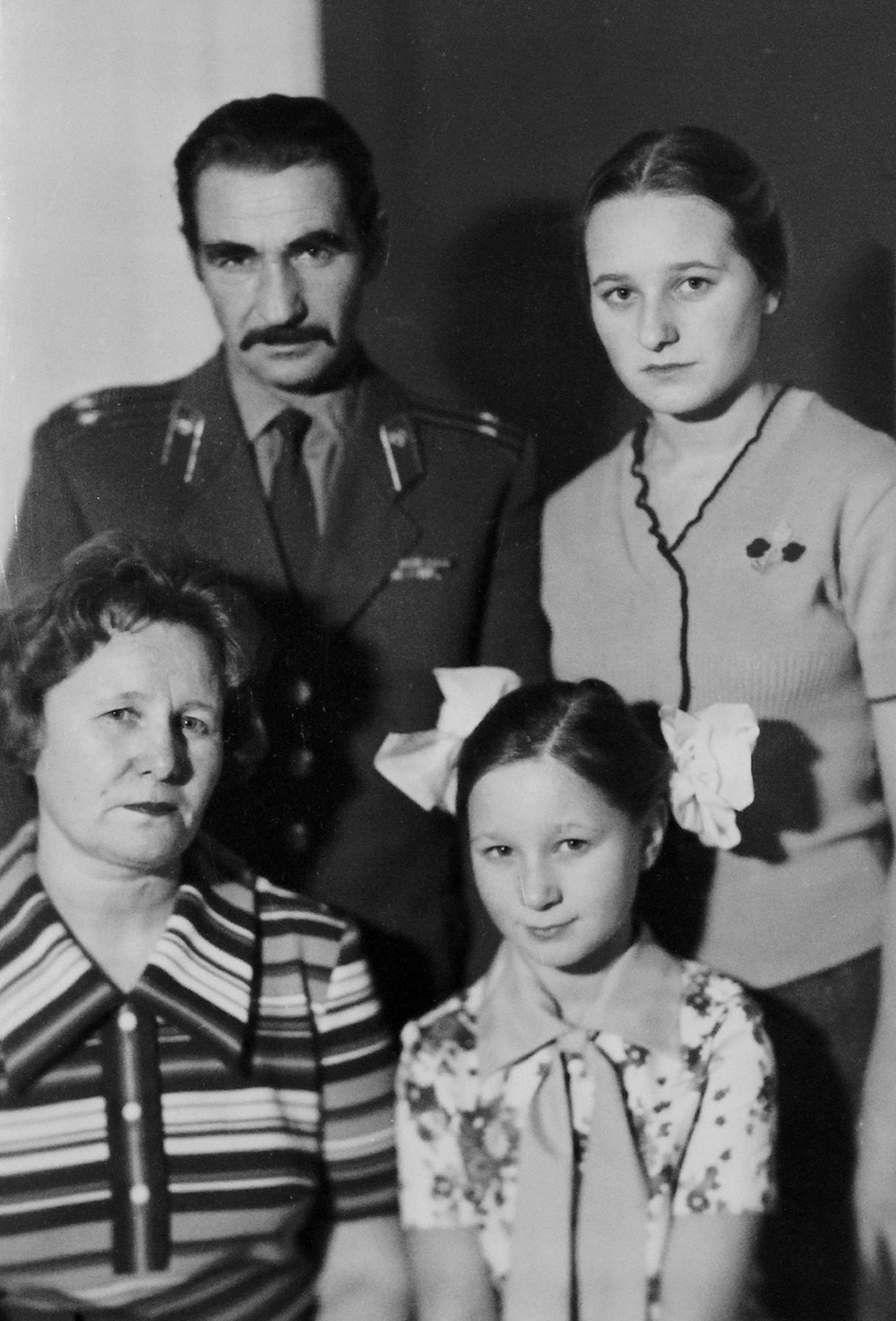 Mi abuelo fue militar y en los años 1950-70 la familia cambió de domicilio más de cinco veces hasta que se instaló definitivamente en un barrio entonces nuevo de Leningrado, en un “edificio-barco” recién construido. Allí él siguió con su carrera y mi abuela obtuvo un puesto de profesora de lengua y literatura en un colegio que estaba al lado de casa. Los dos salarios les permitieron amueblar el piso a la última moda, los recuerdos que habían traído de sus lugares de alojamiento anteriores lo adornaron.