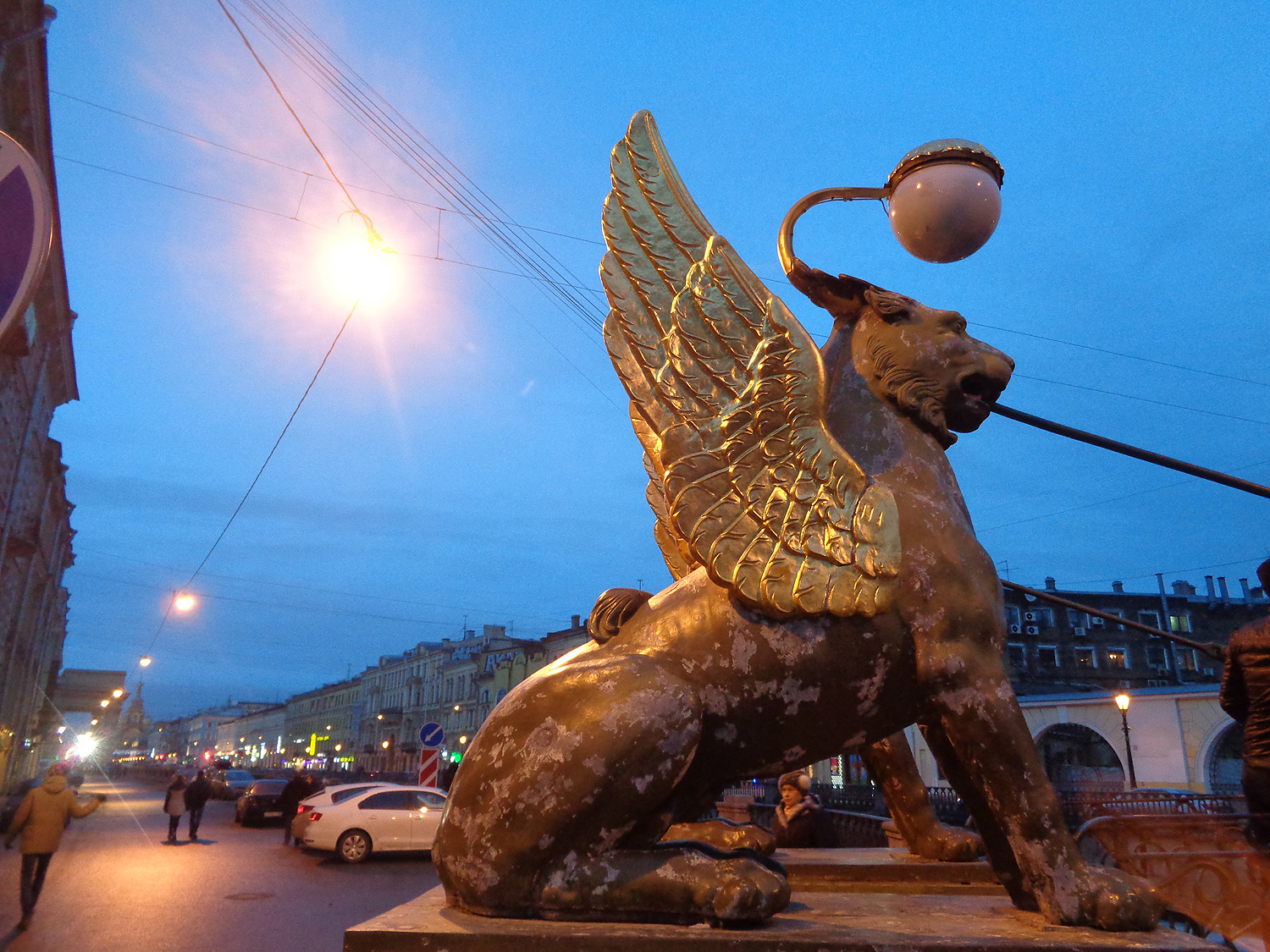 En el puente Bánkovski con sus cuatro grifos mitológicos volví a hacer fotos intentando no molestar a los turistas: lo necesitaban más que yo.