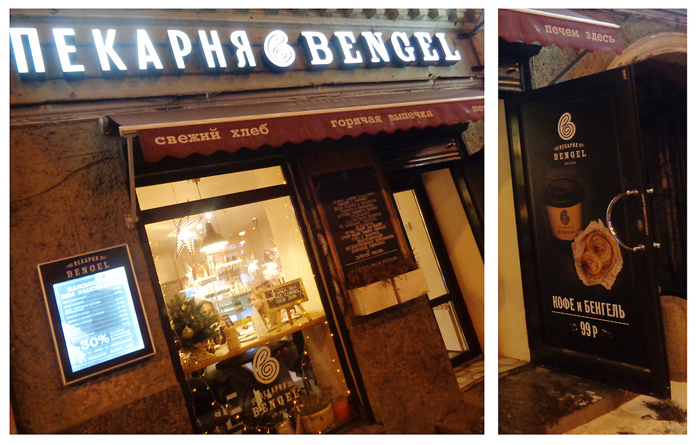 Llegué al final de la calle y por la avenida Zágorodny fui hasta la avenida Vladímirski sin dejar de fijarme en las cafeterías que había por allí. Encontré una muy curiosa: la “Panadería Bengel”. Era pequeña y parecía acogedora, y además, en su puerta había un anuncio muy prometedor: “Un café y un bengel = 99 rublos”. ¡Un café y un no sé qué “bengel” que parecía una especie de palmera con canela por tan sólo 1, 50 euros! Entré sin pensármelo dos veces.