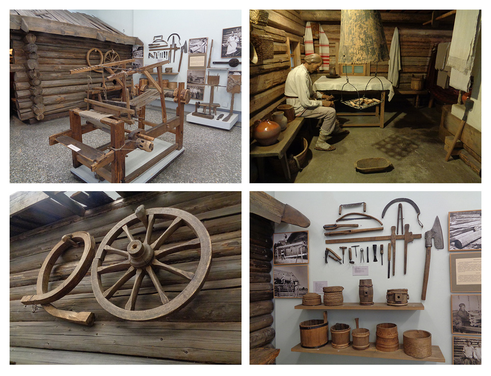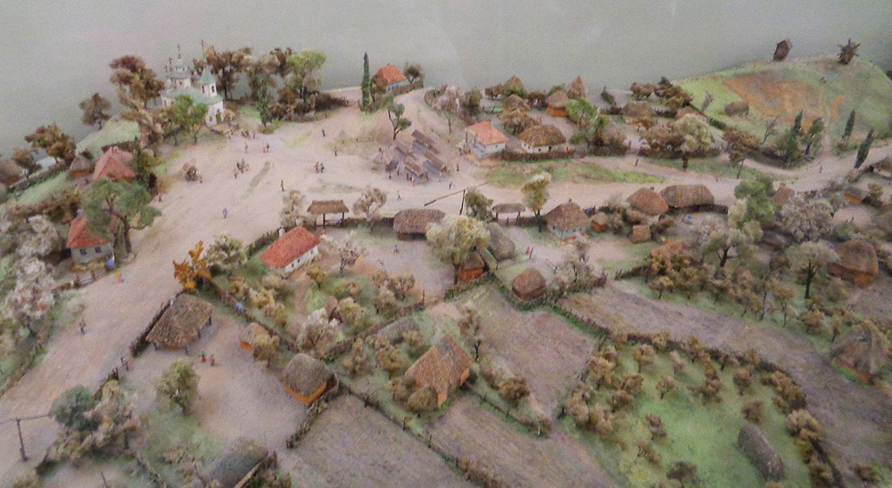 Mi madre y yo nos habíamos preocupado en vano pensando que los niños se podían aburrir en el museo. Al contrario, enseguida les atrajeron las “muñecas grandes” con sus vestidos de colores, adornos y otros detalles interesantes; los trineos de ciervos, barcos con remos, utensillos antiguos. Y a la niña le gustaba ver las casas de distintos grupos étnicos: lo miraba todo corriendo de un lado a otro. Lo que más le gustó fueron los maniquíes vestidos con trajes típicos nacionales del Cáucaso, esas novias georgianas con sus velos y sus pantalones anchos con piedras incrustadas. Y las maquetas de las aldeas ucranianas… A mí también me gustaban a esa edad e incluso más tarde. Esas increíbles maquetas con sus ríos, casas y vacas en los prados me inspiraban. Luego llegaba a casa e intentaba hacer algo parecido de plastilina, cerillas, papel… Recuerdo muy bien aquella sensación de querer llegar a casa y ponerme a hacer una maqueta así.